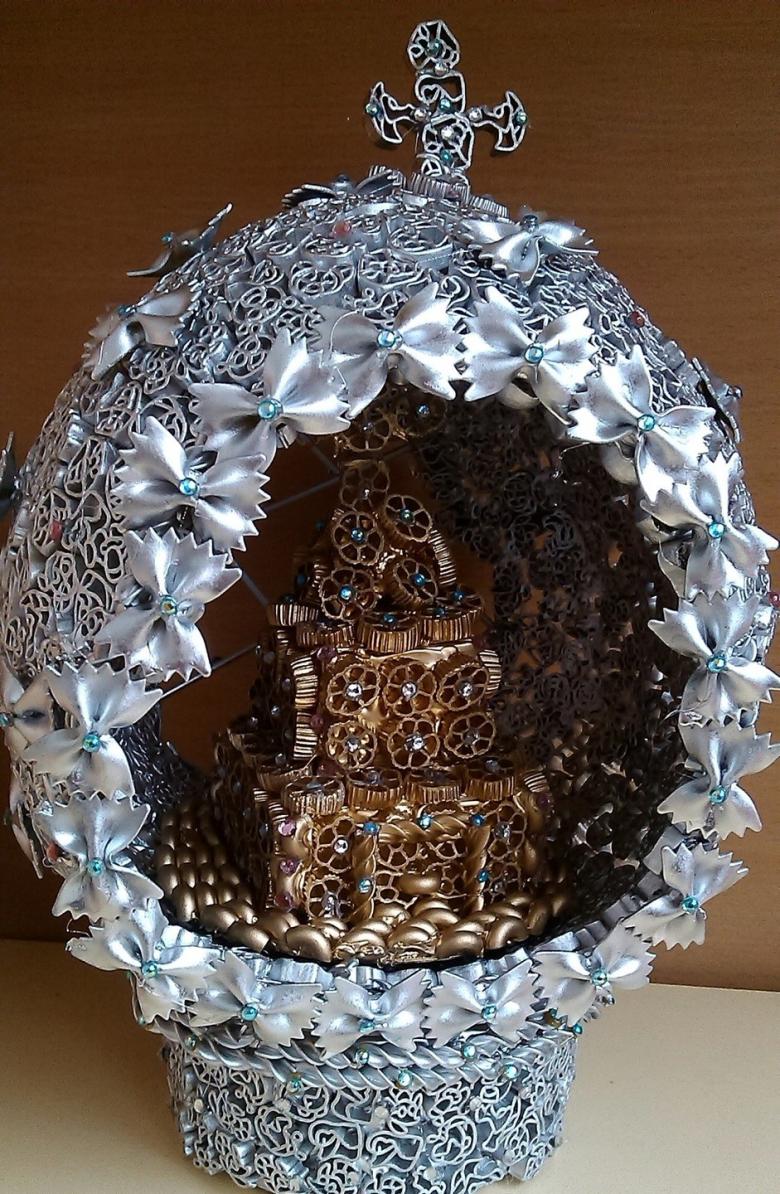 Notre atelier de bricolage en pâtes vous permet de réaliser vos propres bricolages sur le thème de Pâques à partir de macaroni. Il conviendra comme décoration pour la table de fête, pour décorer un coin à thème, il peut être présenté comme souvenir à des amis, des collègues. Pour le préparer, vous aurez besoin de
