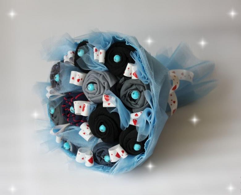 Ce bouquet original n'a pas honte de compléter un cadeau de base. Non seulement il s'agit d'un cadeau utile qui peut être utilisé aux fins prévues, mais c'est aussi un ajout beau et inhabituel à l'intérieur. Il est si polyvalent que, selon le remplissage et la conception de la décoration, il sera apprécié par tous, des petits aux grands : hommes, femmes et enfants apprécieront une approche aussi peu conventionnelle.