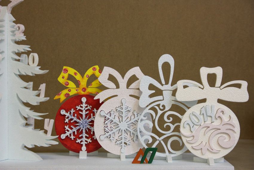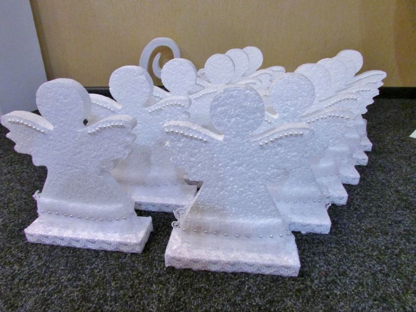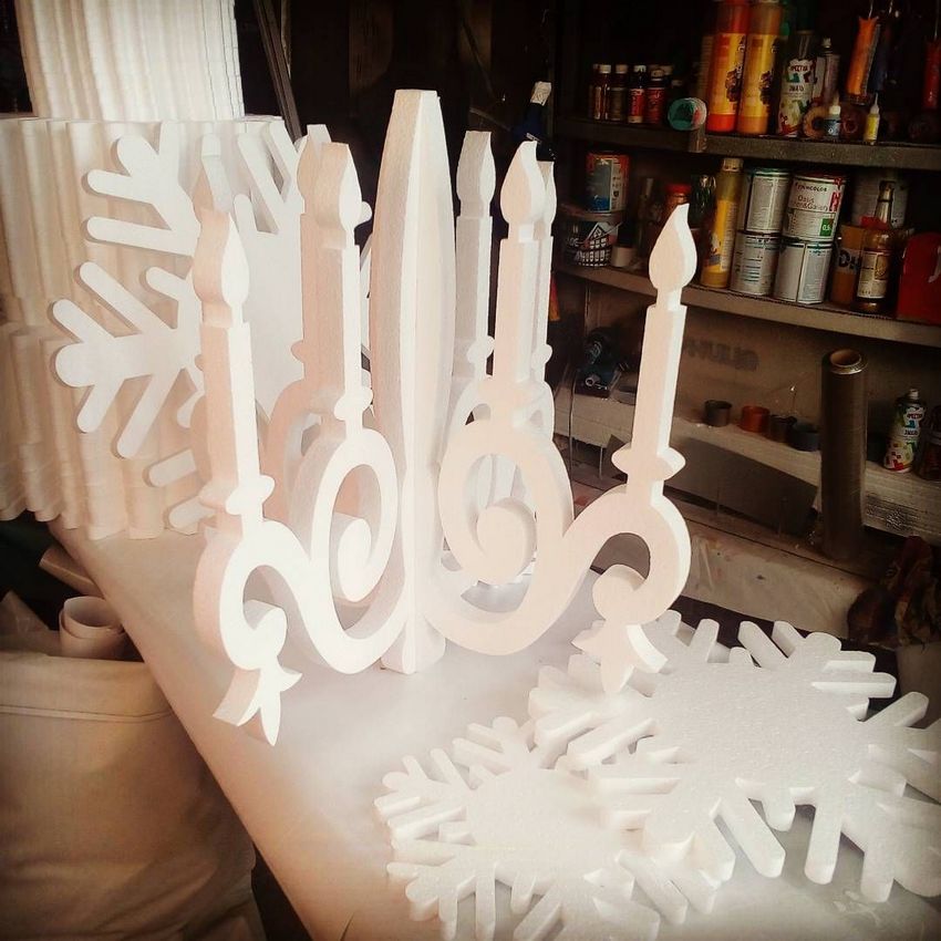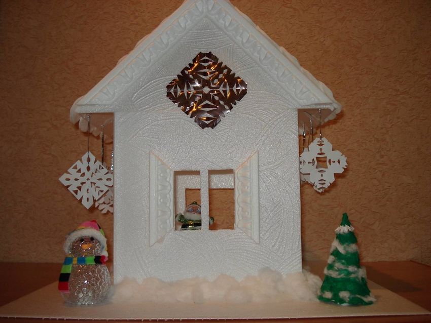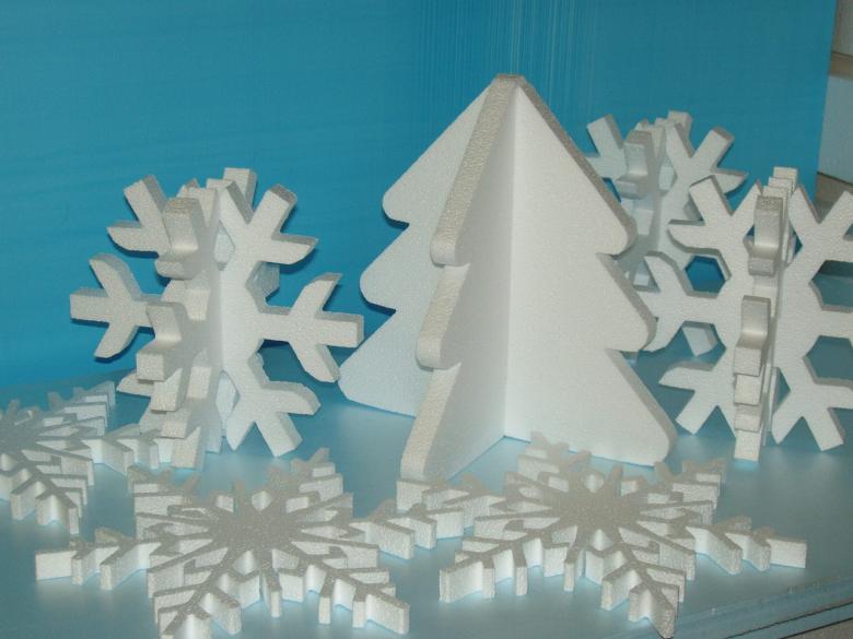 Le polystyrène peut être utilisé pour réaliser de nombreuses surprises pour le Nouvel An : un sapin de Noël, un bonhomme de neige, le Père Noël, la Vierge des neiges, des décorations de Noël, des boules, des figurines de différents personnages et bien d'autres encore.