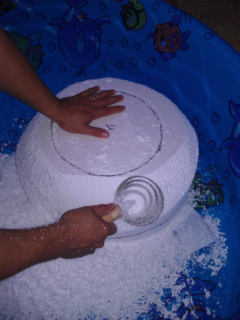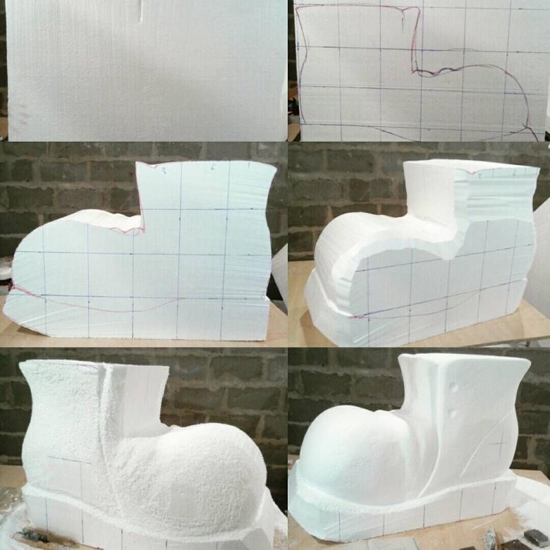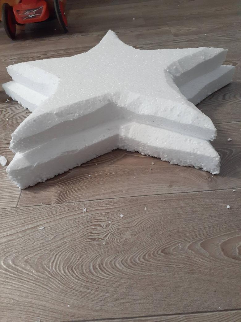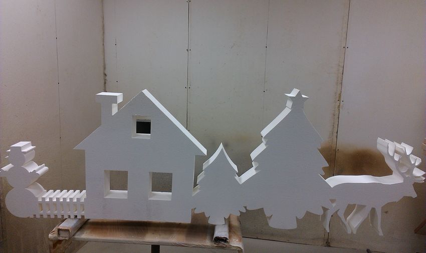Dessinez ensuite un croquis de l'objet souhaité sur le polystyrène et découpez-le, puis peignez et vernissez-le.