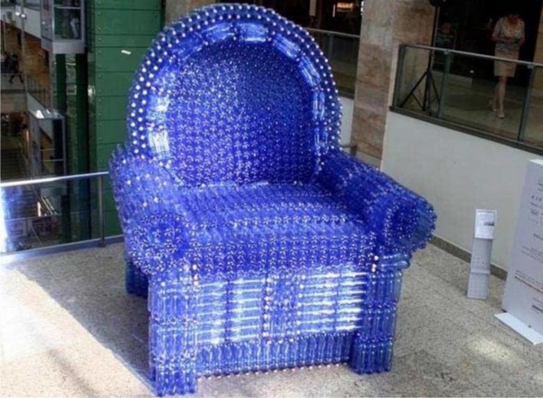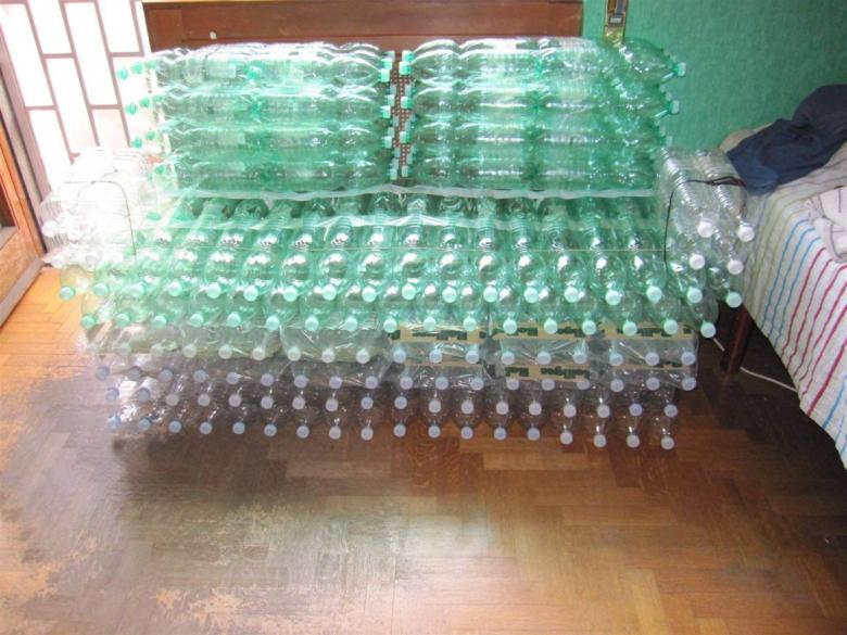 Pour les jardiniers qui n'ont pas encore leurs meubles ou qui veulent les améliorer, vous pouvez fabriquer un canapé ou un fauteuil. Pour ce faire, les bouteilles en plastique sont assemblées en petits blocs qui sont ensuite combinés en un article fini.