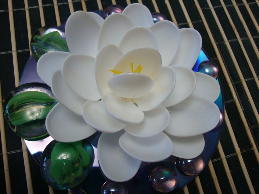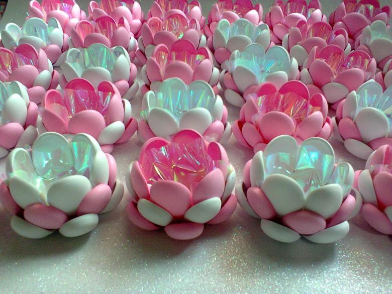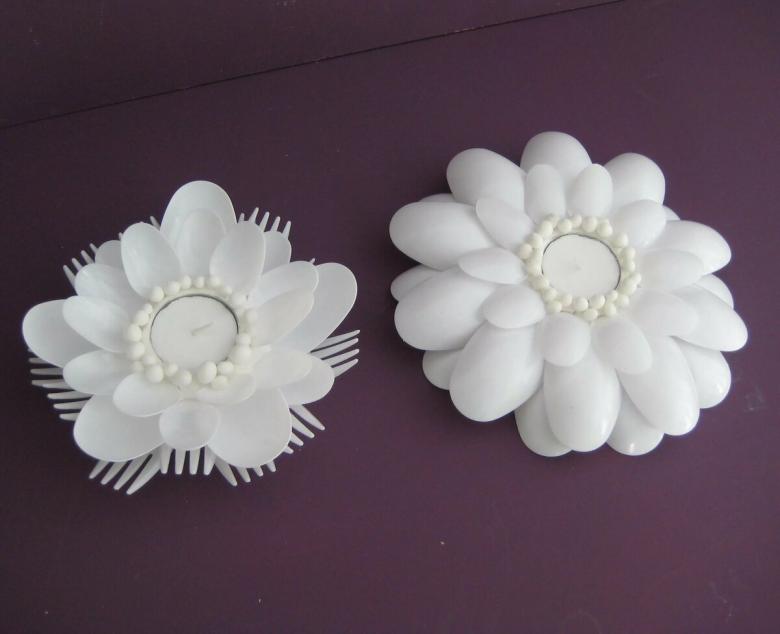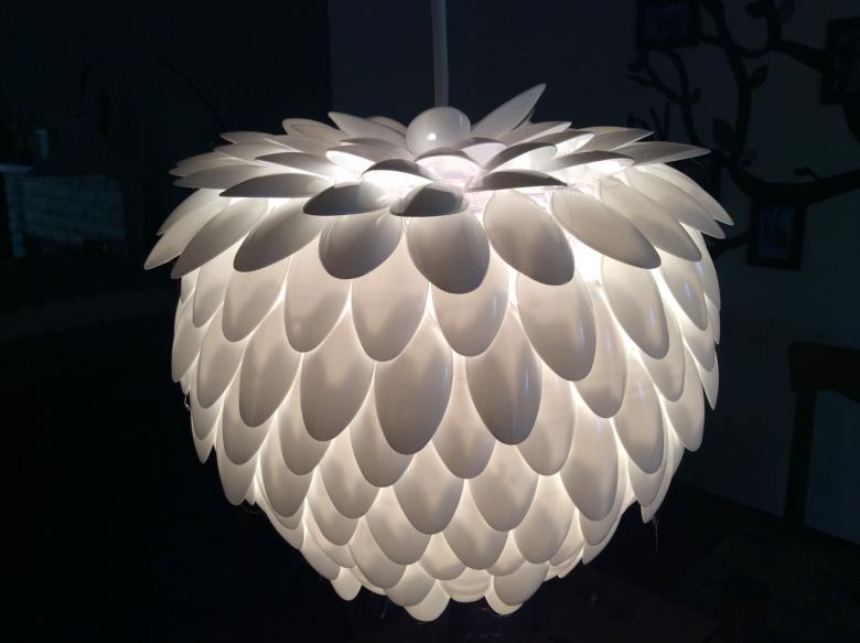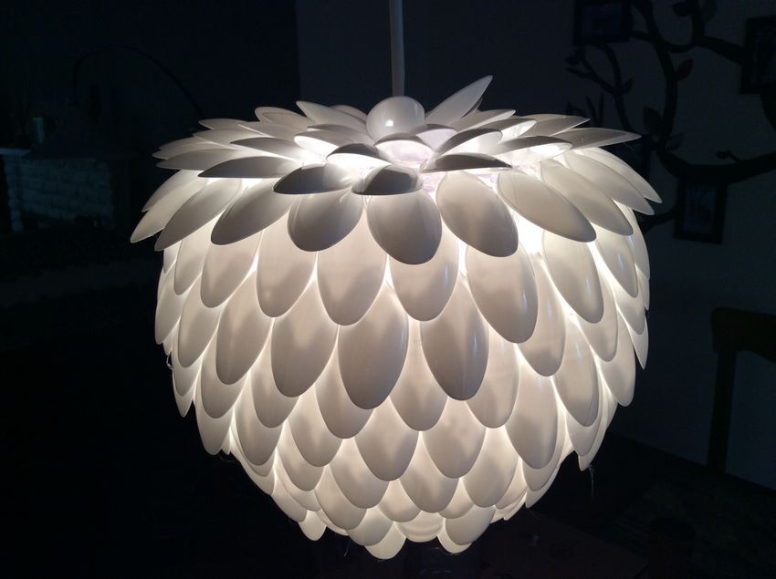 Pourquoi acheter un abat-jour ou un lustre quand vous pouvez le fabriquer vous-même ? Les luminaires en forme de lotus créeront l'atmosphère la plus romantique possible. Si vous ne décorez pas l'ensemble, vous pouvez en faire un stand. Un magnifique support à fleurs décore toute bougie électronique ou en cire. Les lanternes de lustre ordinaires sont plus intéressantes si vous faites des rangées circulaires de cuillères en les cousant.