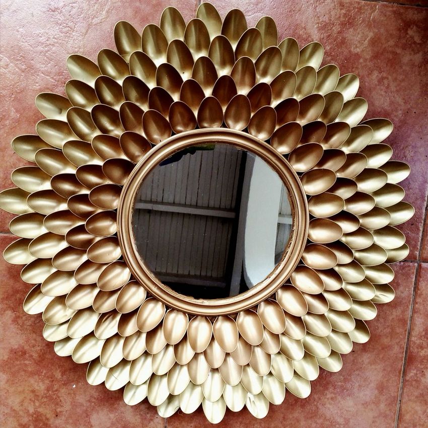 Décorez les miroirs et les horloges. Créez un cadre pour eux. Utilisez du carton ou du bois de forme ronde pour la base. Et collez les rainures sur cette surface. Vous pouvez le faire en cercle, vous pouvez faire beaucoup de couleurs. Vous pouvez mettre une photo dans ce cadre.
