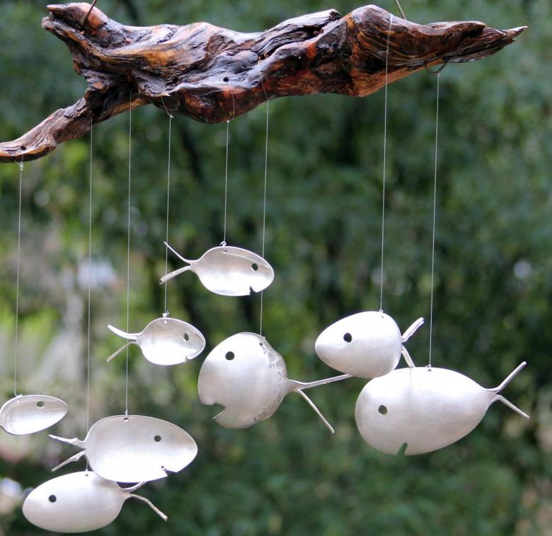 Pliez leurs extrémités en utilisant la chaleur d'un briquet (un enfant ne doit en aucun cas faire cela !). Faites des entailles sur les côtés des coudes. Et, en partant du bas vers le haut, fixez les étages autour de la tige avec du fil ou un ruban fin. Vous pouvez également attacher les cuillères ensemble en gradins en les faisant fondre dans une flamme, plutôt que d'utiliser une ficelle. Vous pouvez également les fusionner, mais uniquement du haut vers le bas.