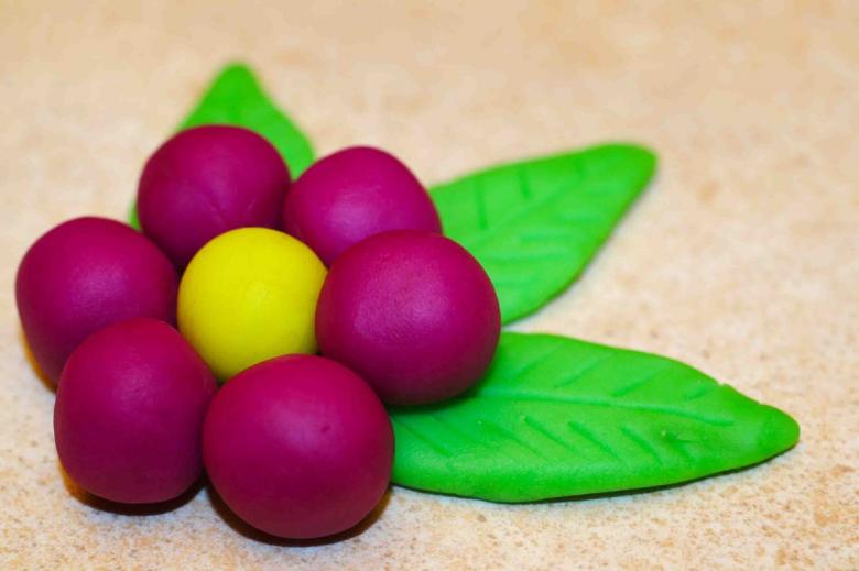 - Écrasez correctement la pâte à modeler. Prenez un morceau et formez une petite boule dans la paume de vos mains.