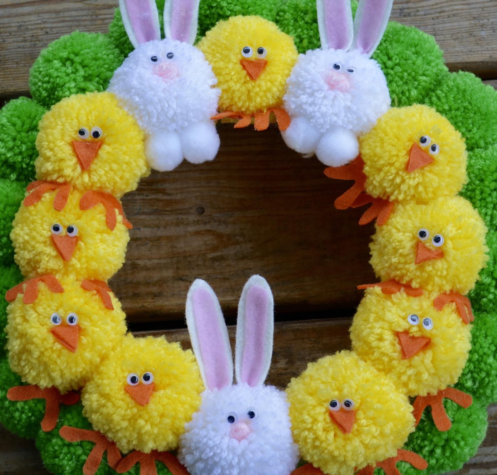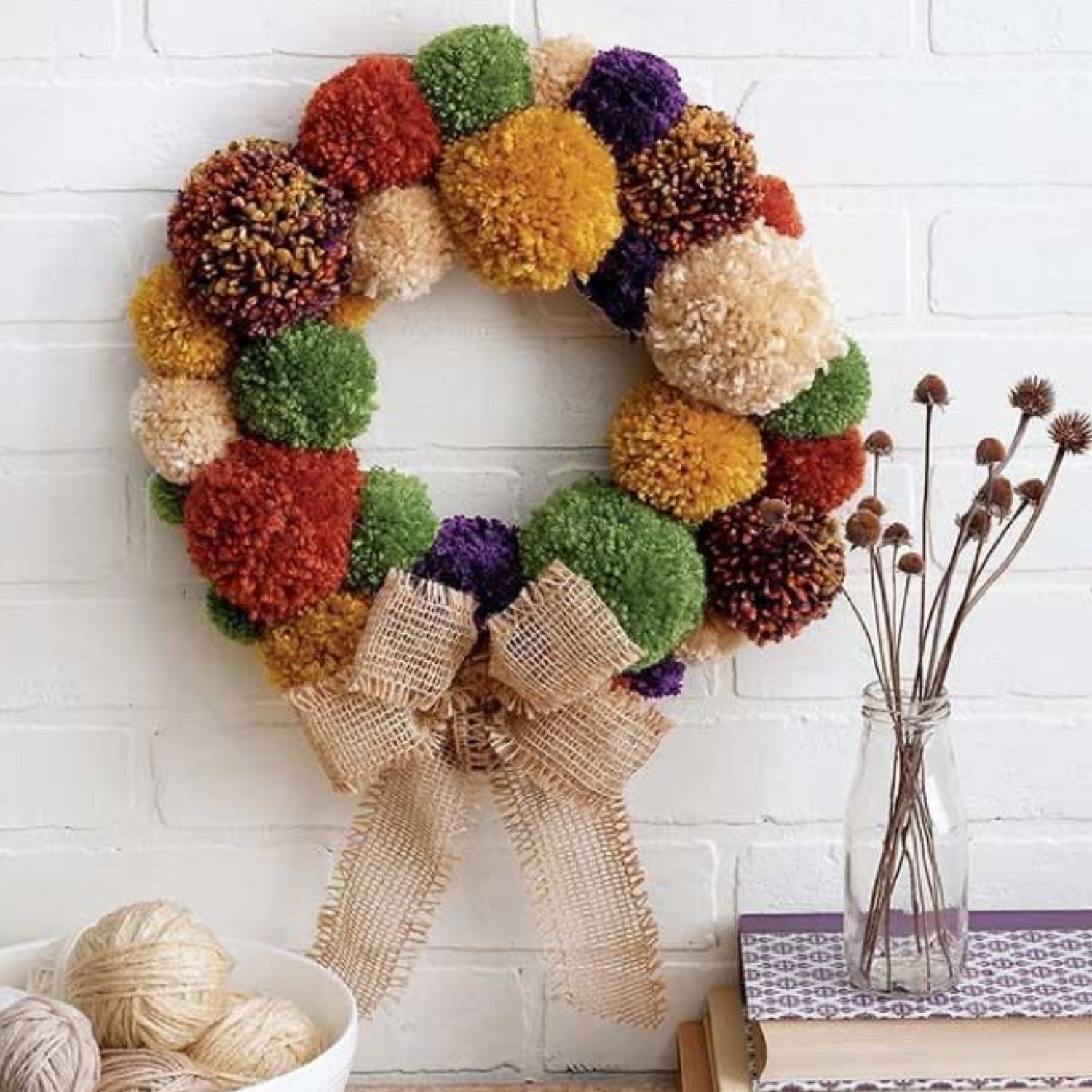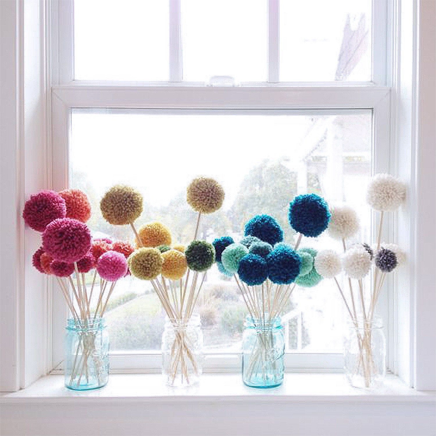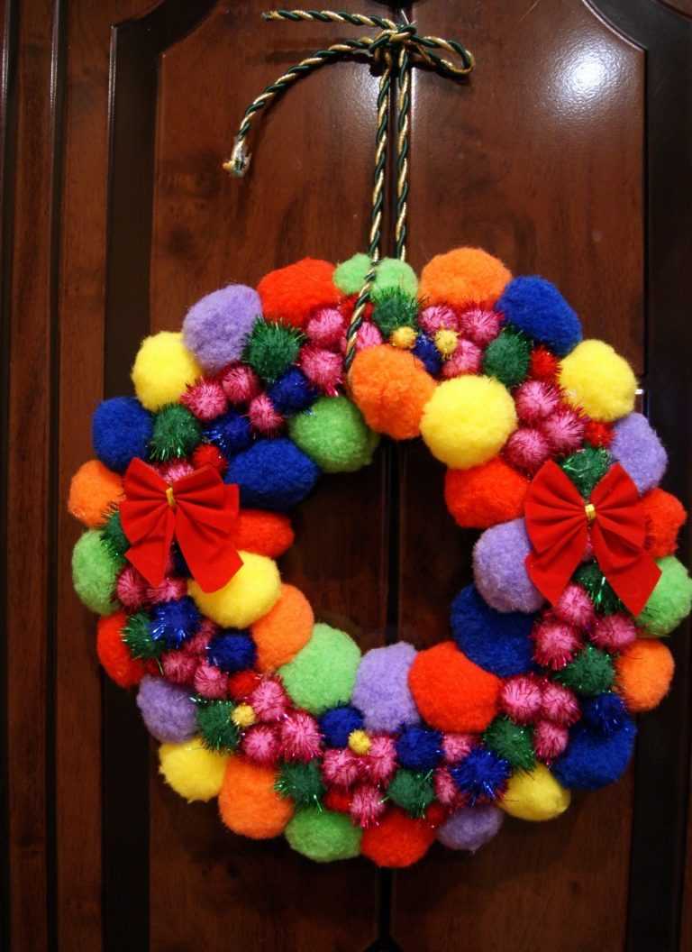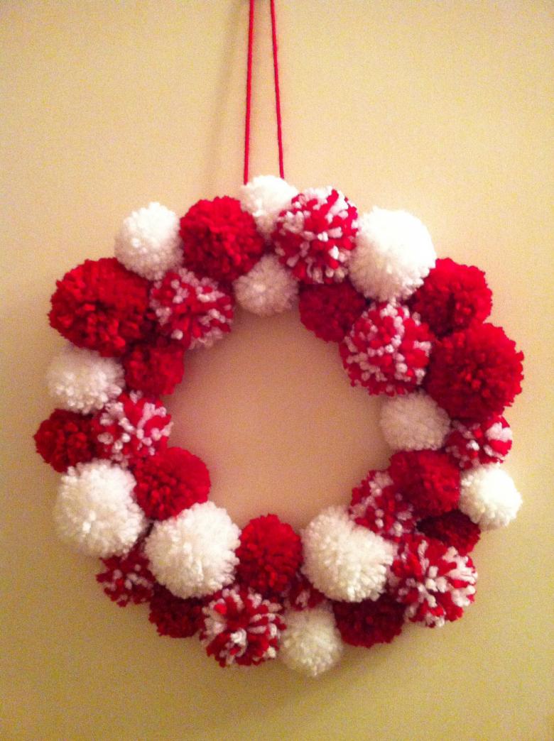 Les objets artisanaux en pompons et en fil de fer pelucheux peuvent constituer une véritable décoration festive pour la maison. Ici, l'artisan peut pré-coudre les pompons adjacents ensemble pour former une guirlande, puis enrouler progressivement la guirlande autour du fil métallique.