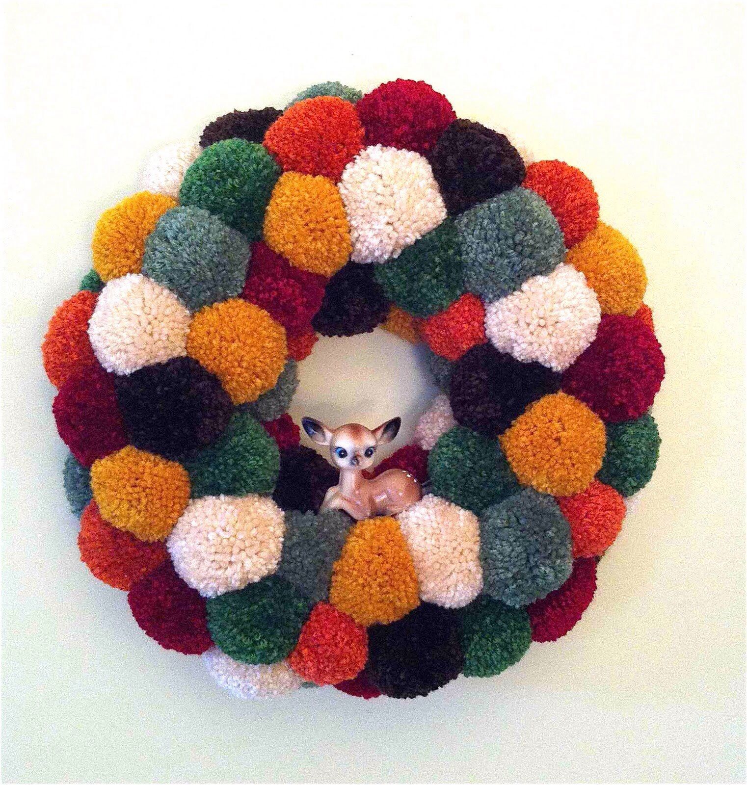 - Passez un fil unique (n'importe quel motif) au centre du pompon.