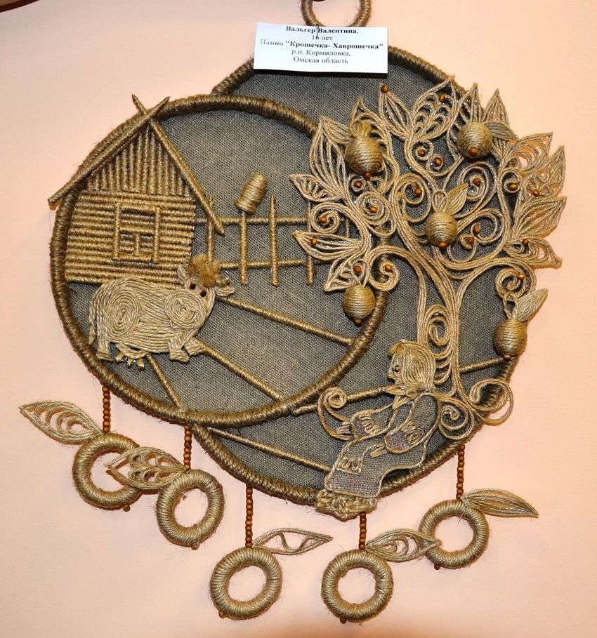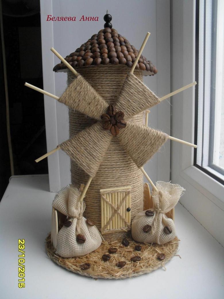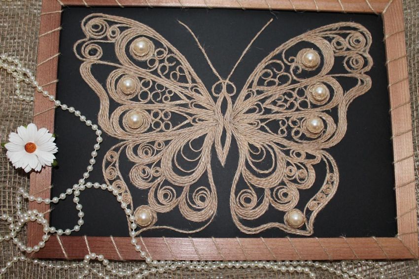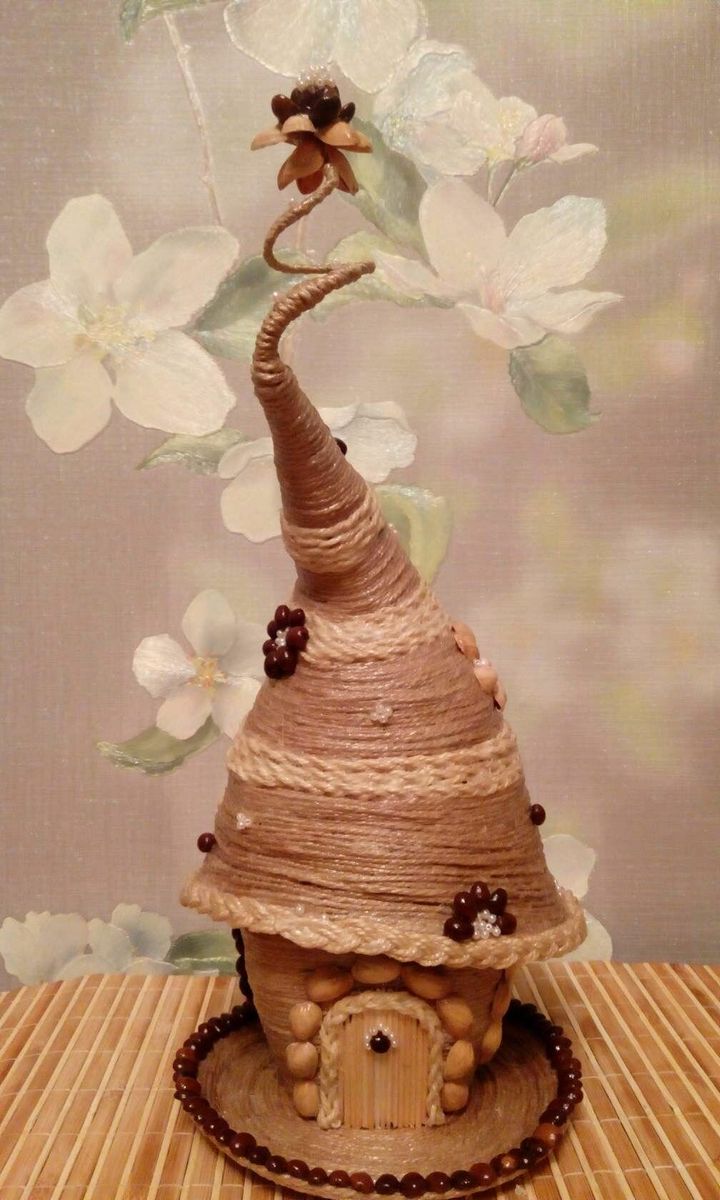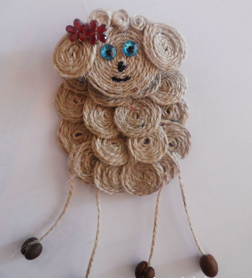 La ficelle est particulièrement respectueuse de l'environnement et contribue à développer la motricité fine, ce qui est utile à tout âge. Les grains de café, les rubans colorés, les fleurs, les boutons et la toile de jute se marient bien avec ce matériau. Ainsi, toute femme au foyer peut choisir les objets les plus beaux ou les plus inhabituels.