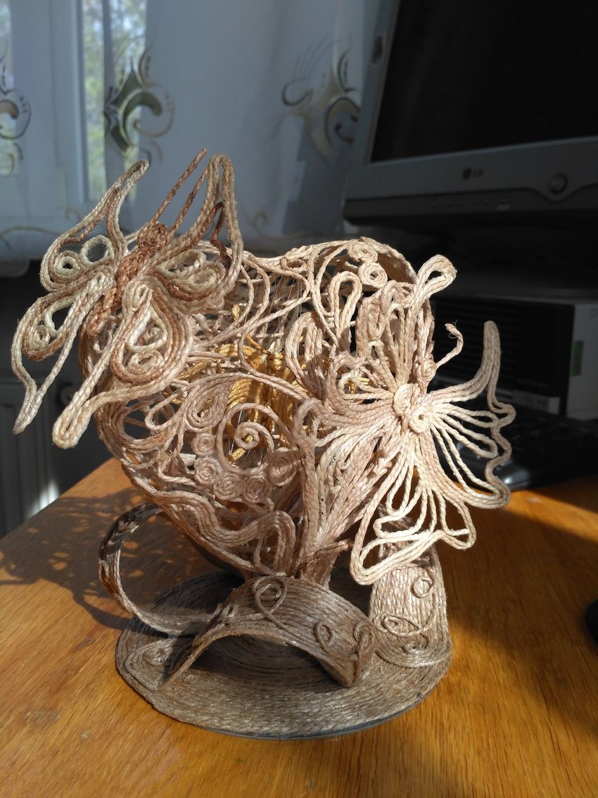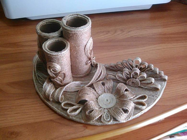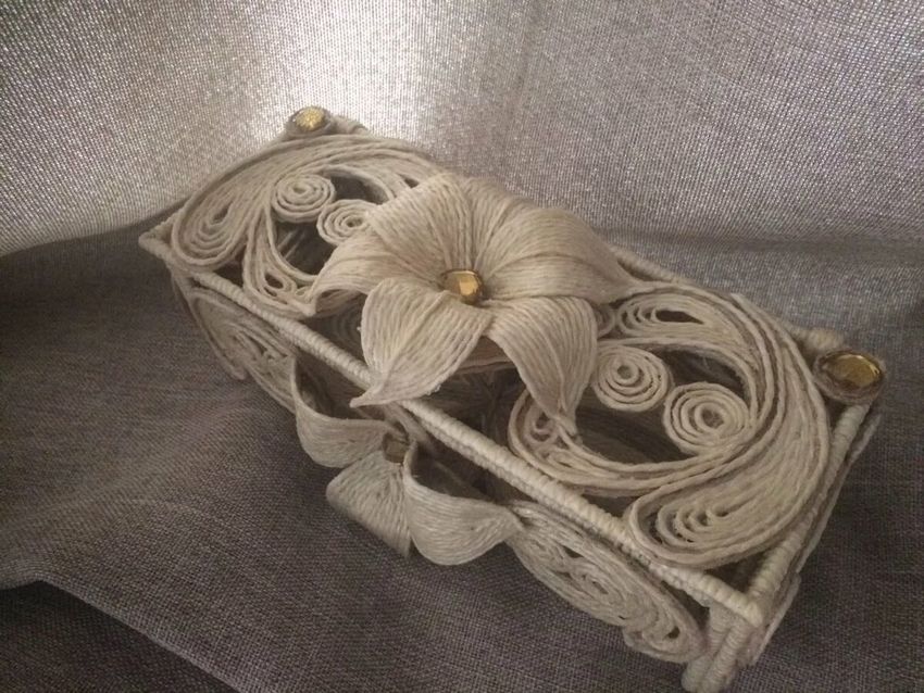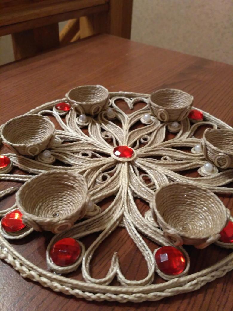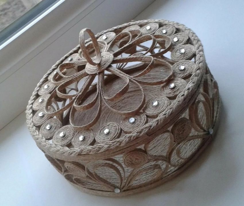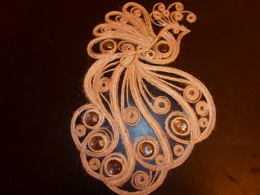 Tous ces métiers sont fabriqués à peu près de la même manière. L'objet original est soigneusement recouvert de colle, et la ficelle est soigneusement appliquée dessus. Les extrémités sont bien tamponnées avec de la colle et cachées à l'intérieur de l'artisanat. Assurez-vous qu'il n'y a pas de distance entre les éléments adjacents. Cela permettra à l'artisanat de conserver sa forme et son aspect attrayant.