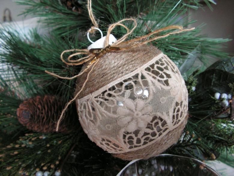 Les ornements pour la création sont des boules de sapin de Noël (elles peuvent aussi être créées à partir de ficelle), des étoiles, des guirlandes, des noix, des cônes, des pattes de Noël, des rubans de satin.