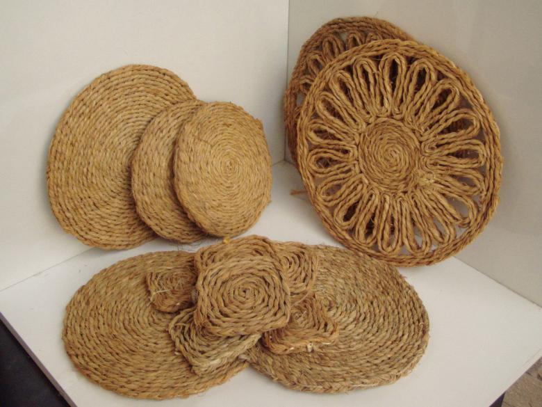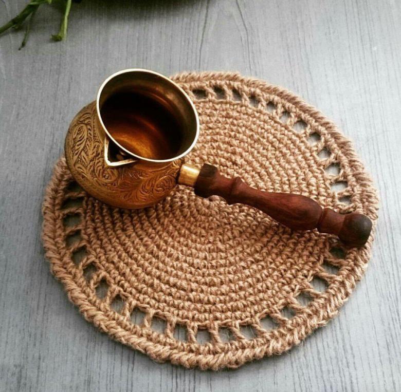 Une atmosphère chaleureuse dans la cuisine ou la salle à manger créera un sous-verre inhabituel pour les couverts. Le tout est complété par des dessous de plat en ficelle.