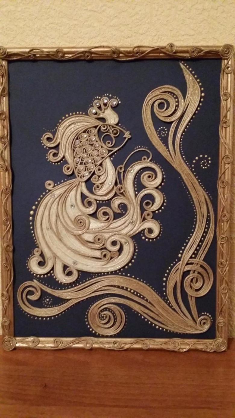 L'échantillon de papier est placé dans un dossier, la ficelle est coupée en morceaux, pratique pour le travail. La colle est appliquée le long des lignes du motif, sur lequel les morceaux de ficelle sont posés très soigneusement. Après le durcissement complet de la colle, l'objet artisanal est soigneusement séparé de la lime, et les résidus de colle sont délicatement enlevés avec un couteau de papeterie. Les fleurs, oiseaux, motifs et ornements qui en résultent sont utilisés pour décorer des objets.