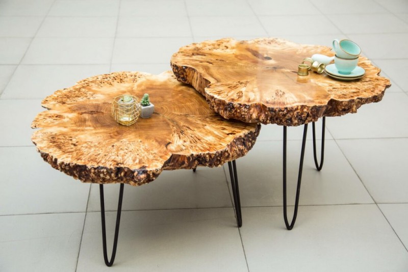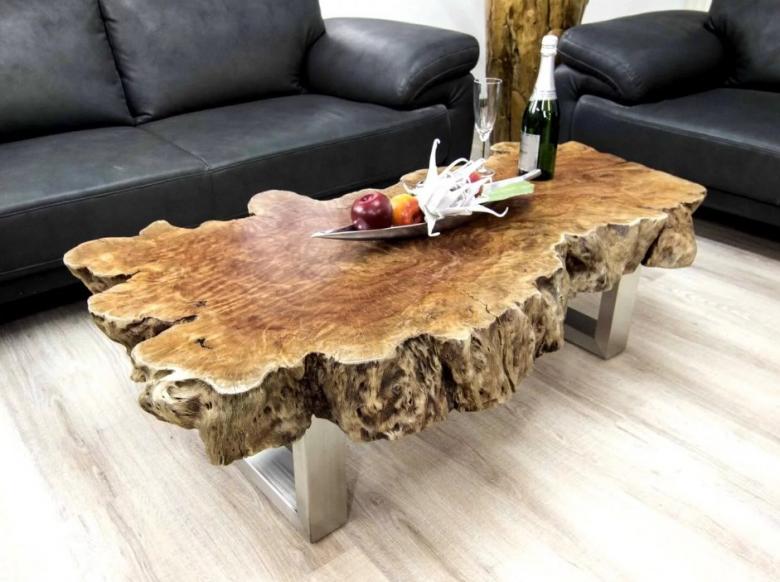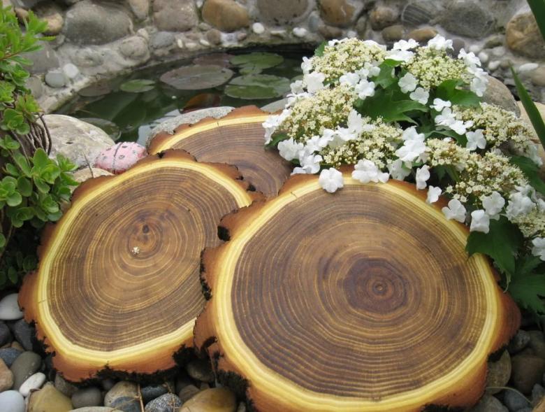 Les souches et les fentes de bois sont largement utilisées pour décorer les salons, les salles de bains, les cuisines et les couloirs. Les meubles de jardin fabriqués à partir de souches ou d'éclats de bois sont très populaires.