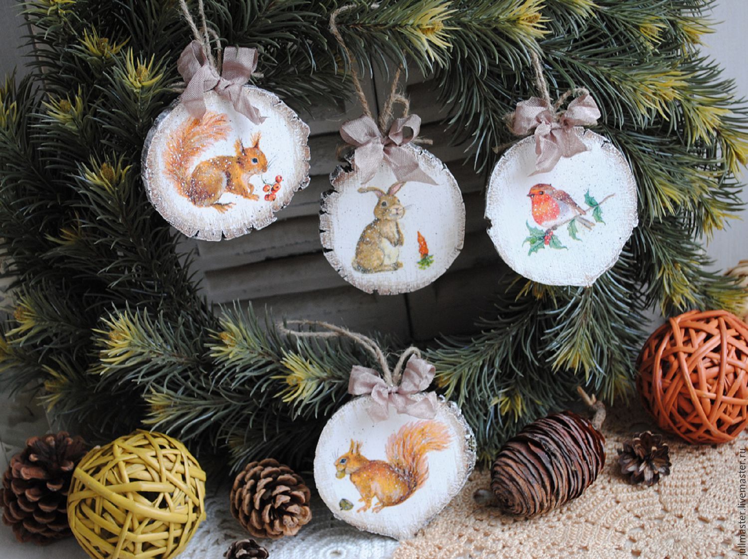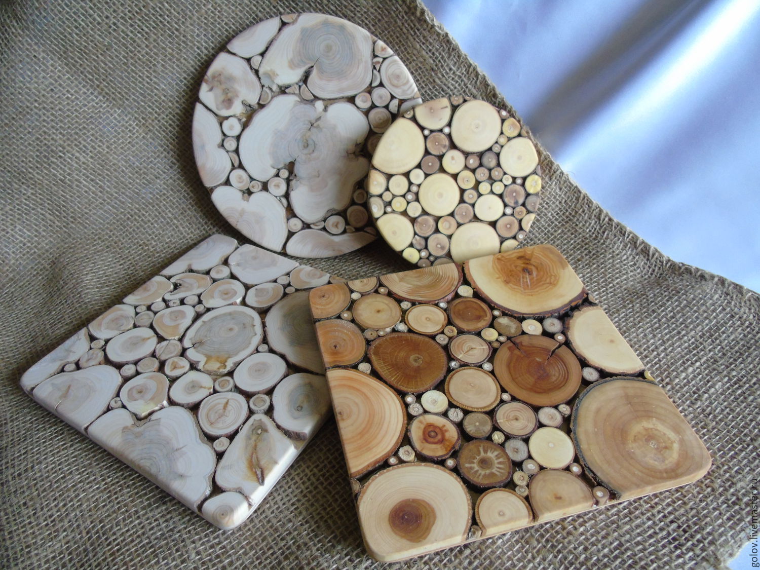 Vous pouvez laisser la décoration extérieure du bois inchangée car les anneaux annuels sont très élégants sur n'importe quelle surface. Si vous le souhaitez, les pièces peuvent être vernies ou joliment peintes avec des couleurs de vitrail.