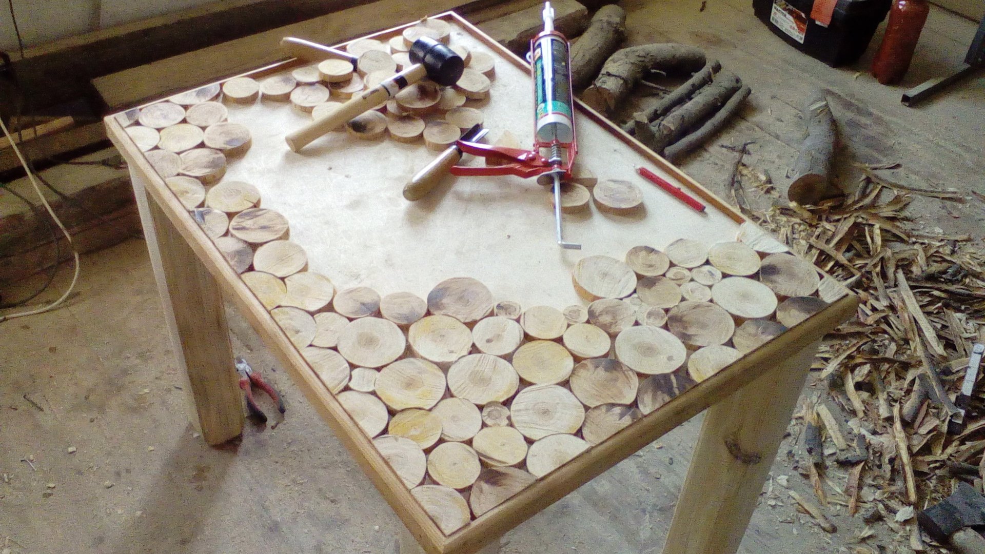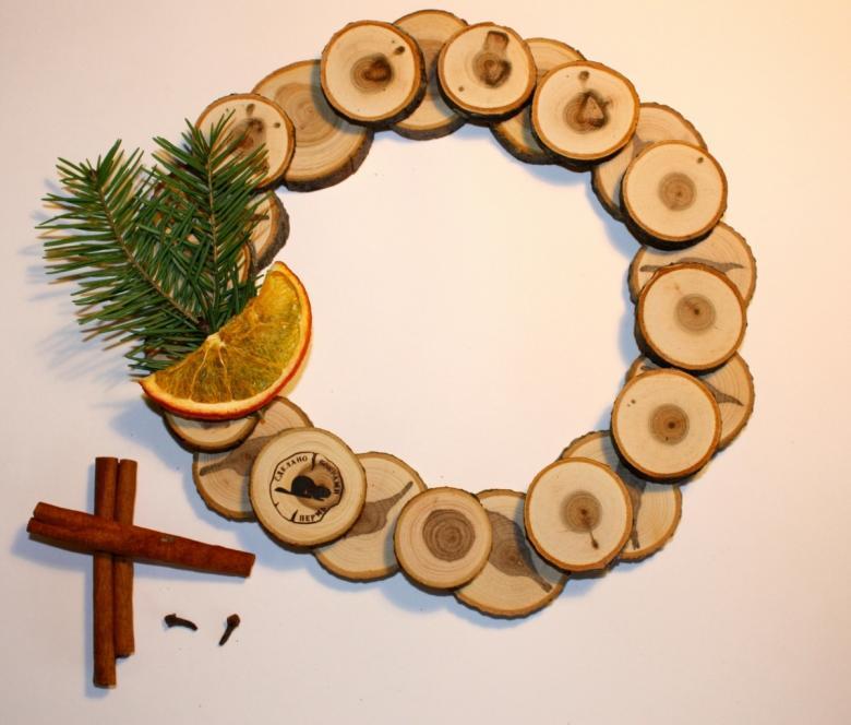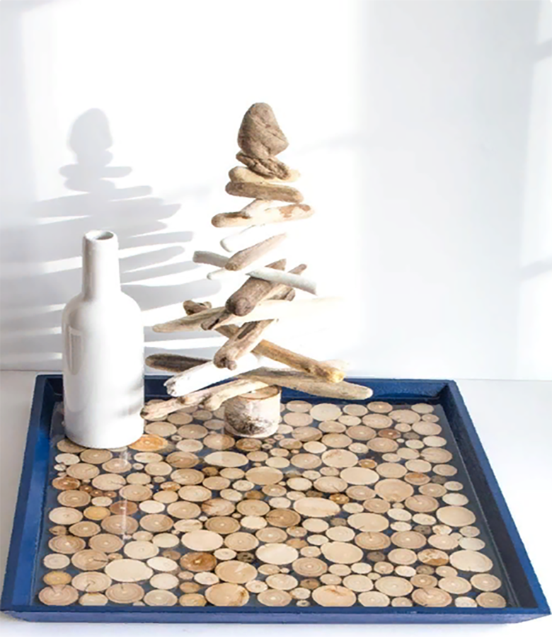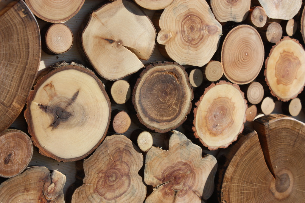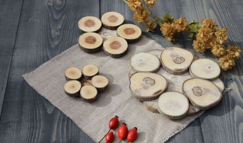 - Après avoir enlevé l'écorce, découpez à la scie sauteuse des cercles fins de diamètre variable.