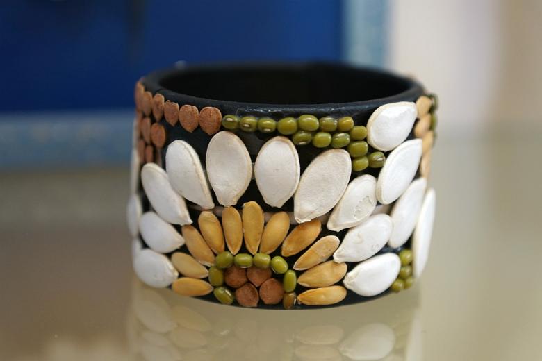 Beaucoup vont plus loin et décorent des sacs à main, des fragments d'horloge et des vases avec la graine. Un ballon de football doté d'un motif distinctif peut remporter le premier prix lors d'une exposition.