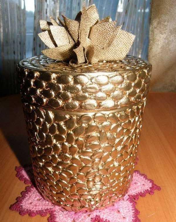 Le coffre à fées ne sert pas seulement à ranger les bijoux fantaisie, mais aussi les petits objets nécessaires au travail. De la même manière que vous pouvez modeler un organisateur pour les fournitures de bureau à partir de boîtes à café, ces bricolages utiles à partir de graines de citrouille et de tournesol pour enfants seront très utiles sur le bureau d'un écolier.