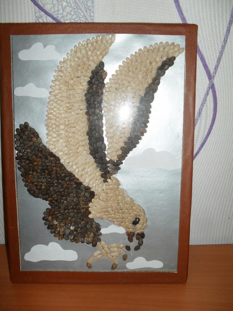 La façon la plus simple de le faire est de décorer un vieux cadre photo. L'esquisse souhaitée y est dessinée et recouverte de matières premières. Vous pouvez également construire vous-même le cadre à partir de carton solide.