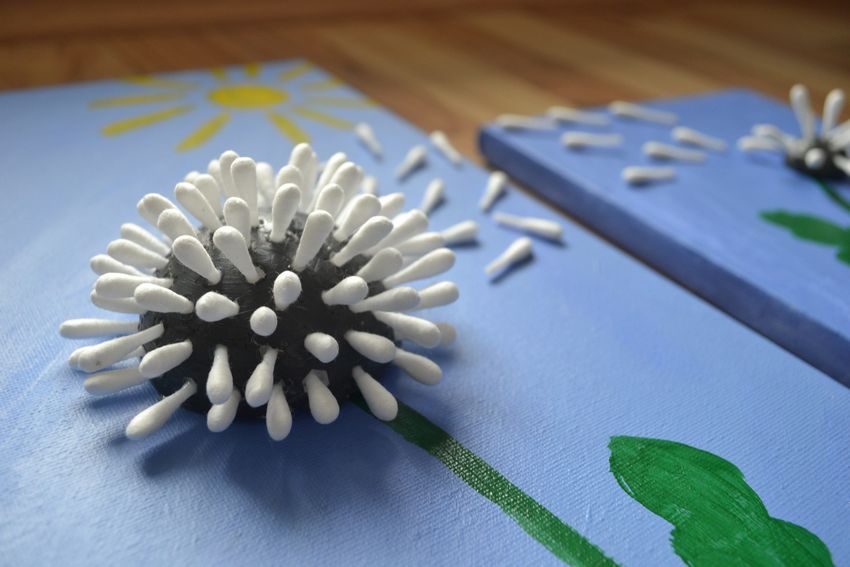 Les cotons-tiges peuvent être utilisés pour réaliser de nombreuses choses intéressantes, de la décoration d'une crinière de lion duveteuse sur une carte ou un morceau de papier, où les "sommets" découpés seront colorés dans la couleur souhaitée. Ou une sorte de hérisson mignon et amusant, dont la base peut être fabriquée en pâte à modeler et ficelée avec des aiguilles et des bouts de coton duveteux.