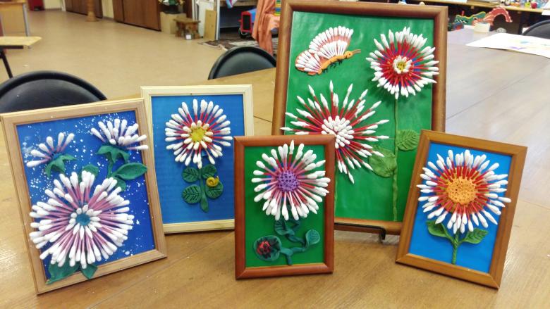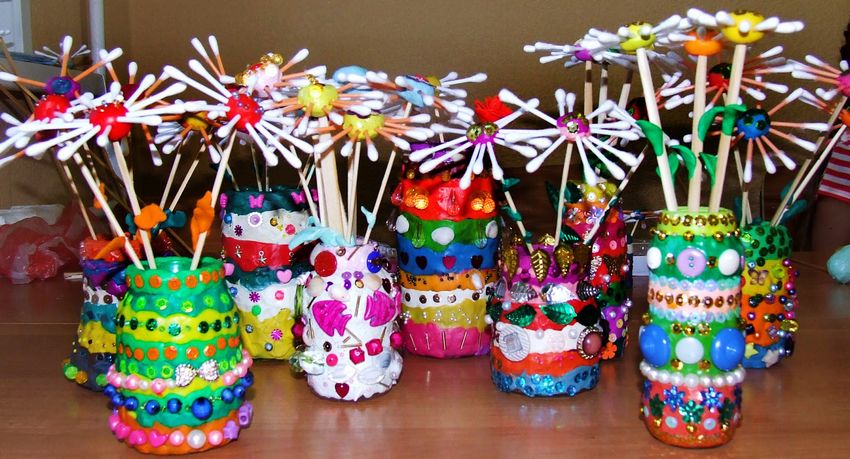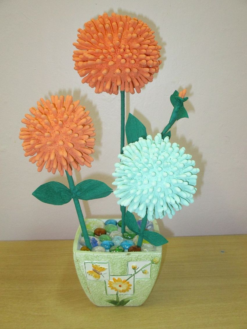 Lorsque vous combinez tous ces matériaux et ces idées, vous pouvez créer des créations intéressantes qui peuvent être associées pour créer des compositions entières. Vous pouvez mettre une base d'argile en forme de bâtonnets d'ouate et faire un arbre auquel on peut attacher d'autres branches en les fixant à l'argile.