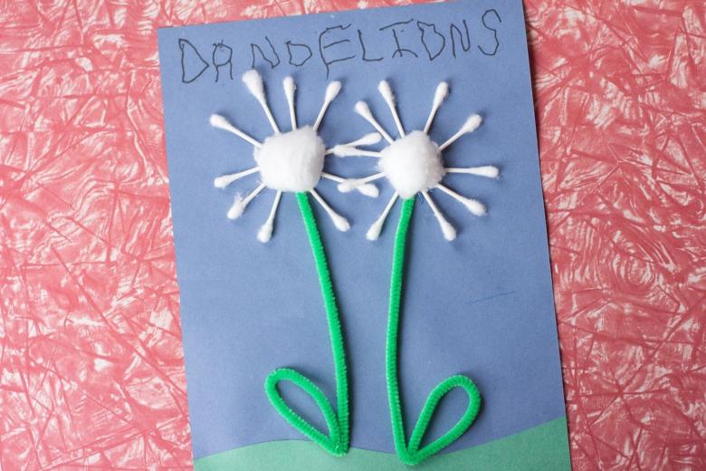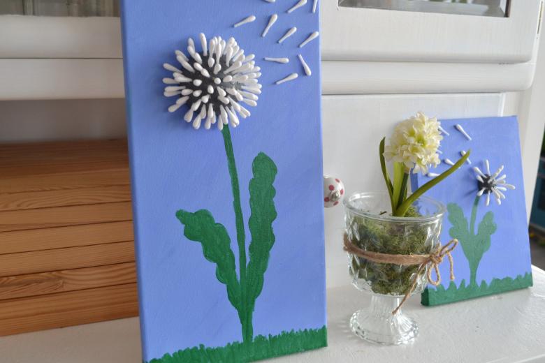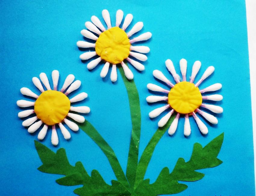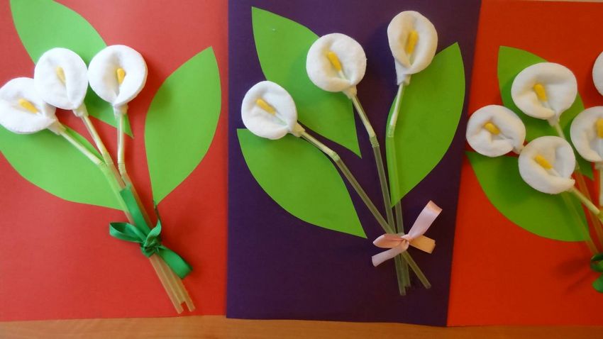 Les disques et bâtonnets d'ouate sont faciles à réaliser et laissent beaucoup de place à l'inspiration. Les bâtons de coton peuvent être utilisés pour faire un saule, une fleur, le nom d'une mère ou d'autres mots de souhaits. Tous ces éléments peuvent être placés de manière intéressante sur une feuille de papier et fixés avec de la colle PVA. D'autres types de colle peuvent également être utilisés, mais soyez prudent et lisez toujours les instructions d'utilisation.