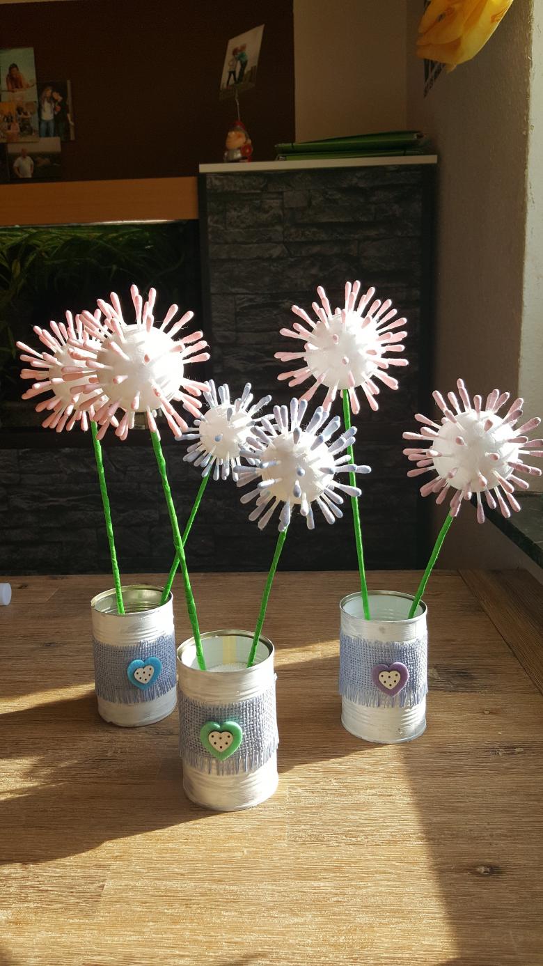 Vous avez besoin de ces ressorts pour enfiler les disques de coton et les façonner en fleurs. Colorez les feuilles et découpez différentes formes en dessous pour obtenir un bouquet de fleurs complet.