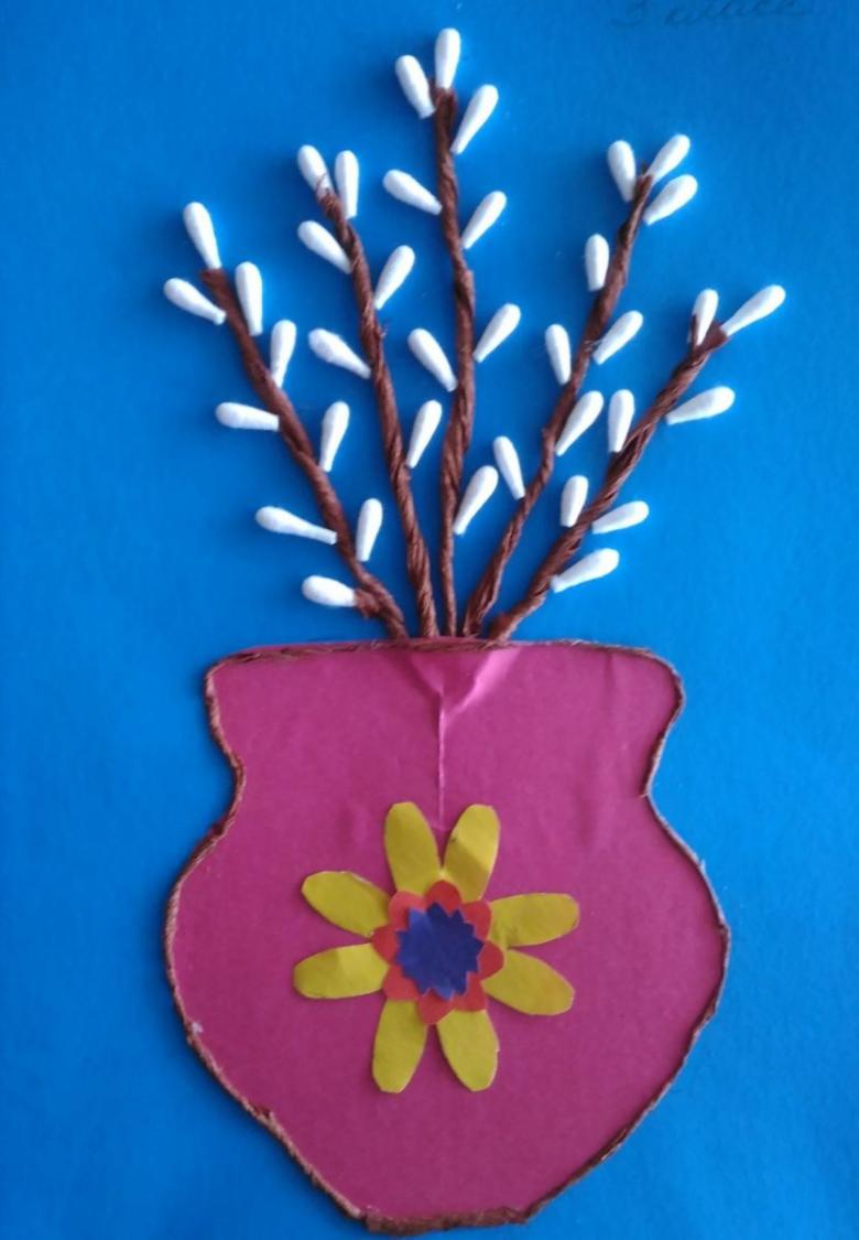 Un palmier saule artisanal pour les enfants à partir de cotons-tiges est une excellente façon de surprendre les enseignants lors des cours de maternelle ou d'école. Vous pouvez décorer le saule avec des paillettes ou des perles de couleur.