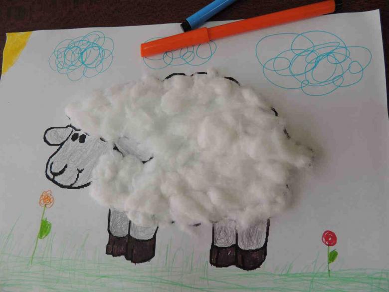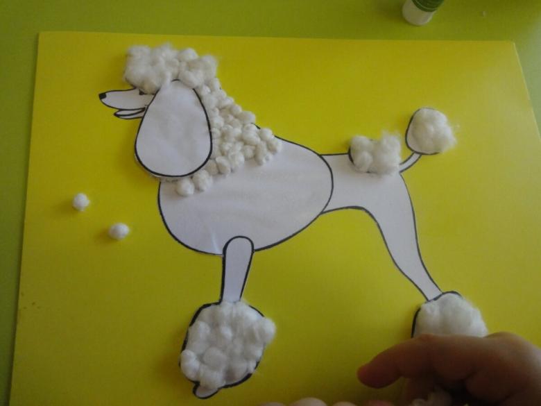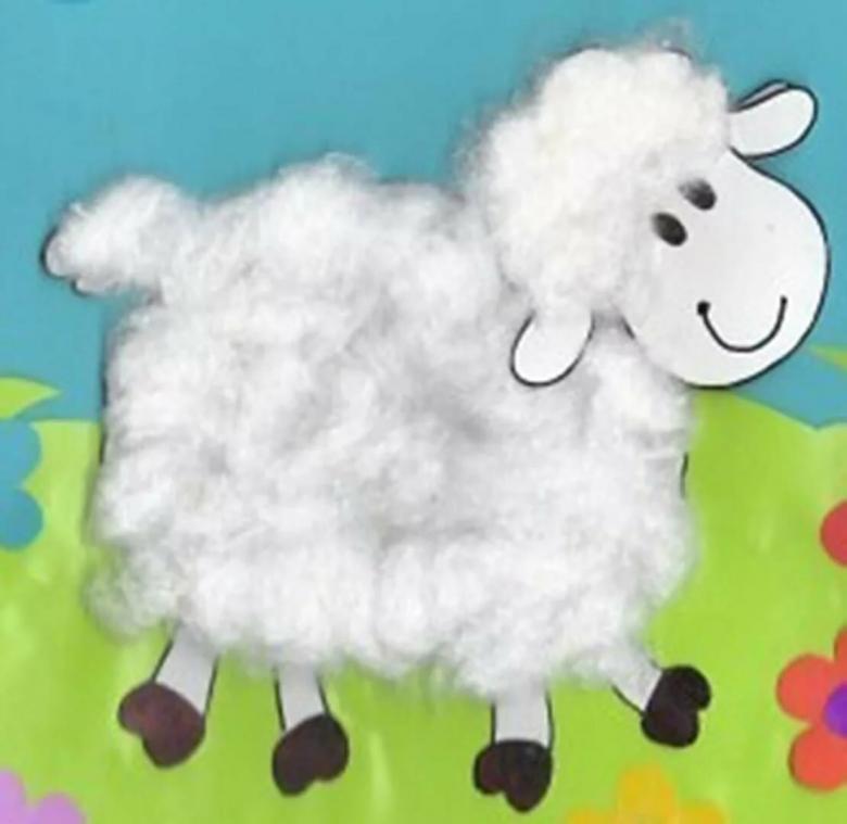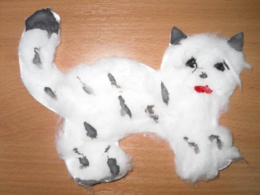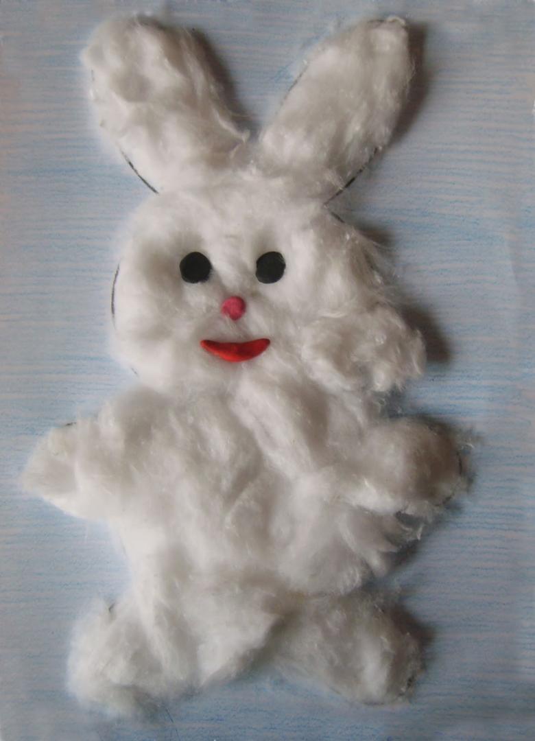 Une applique intéressante avec l'image de différents animaux est également facile à faire à partir de la laine de coton ordinaire.Modèle d'un lapin pour un artisanat de la laine de coton n'est pas difficile à copier ou à dessiner vous-même.
