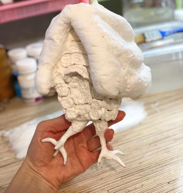 - Formez le corps, la tête, les oreilles, les pattes et la queue du lapin avec de la ouate. Les pièces peuvent être trempées dans la colle.