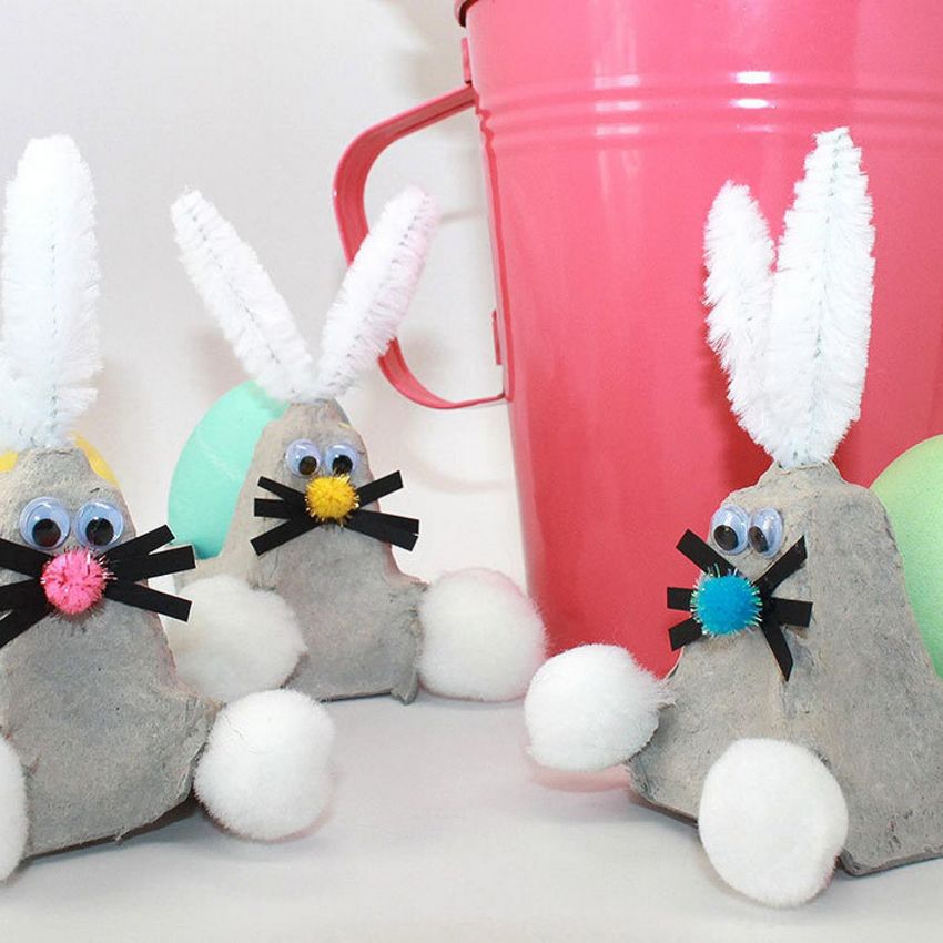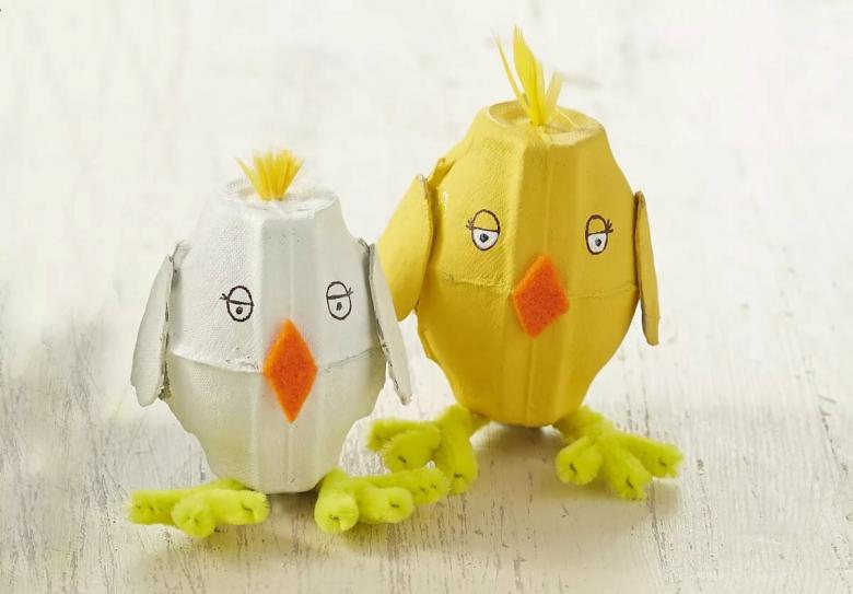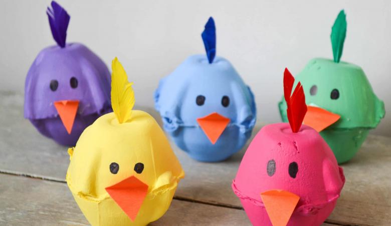 Pour une activité sur le thème de Pâques, des plateaux à œufs peuvent être utilisés pour fabriquer une poule ou un lapin. Vous pouvez les fabriquer avec votre enfant pour la maison ou comme cadeau pour quelqu'un.