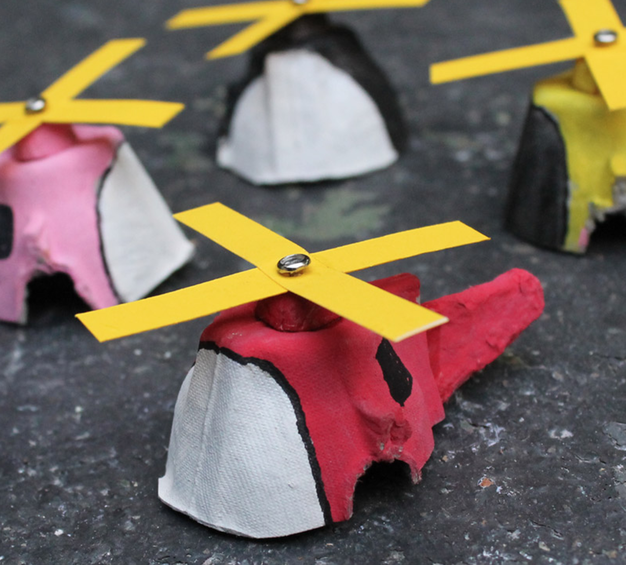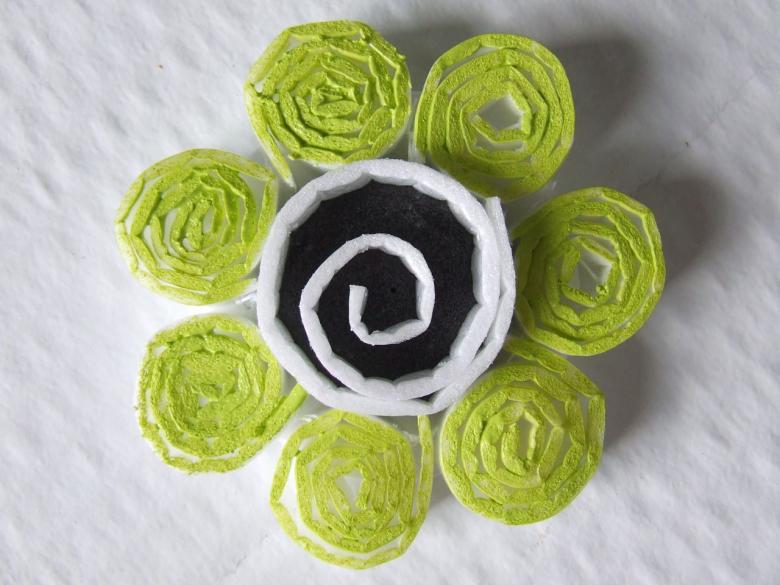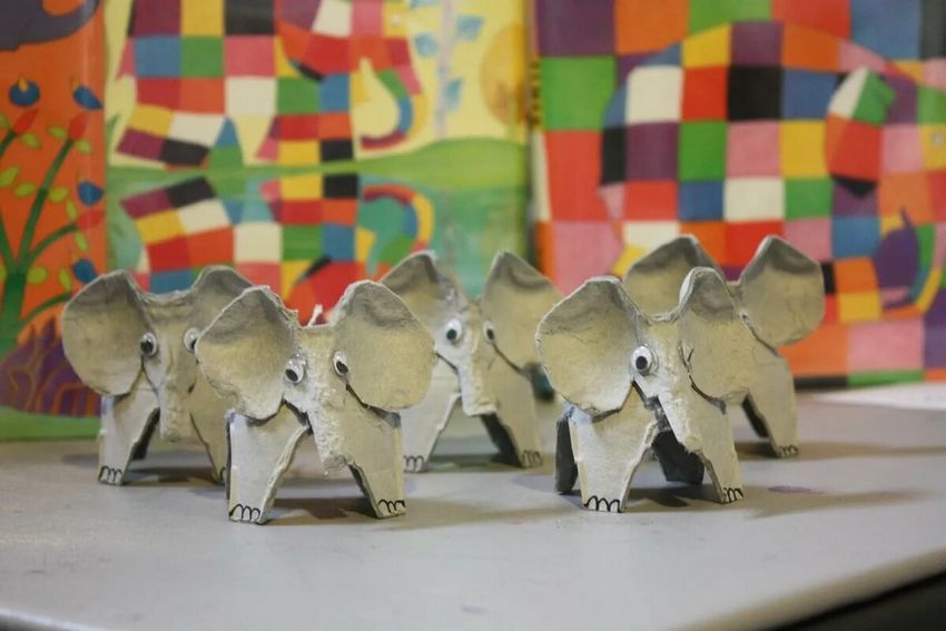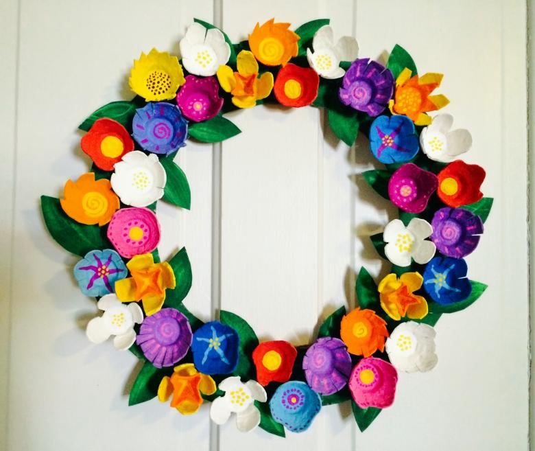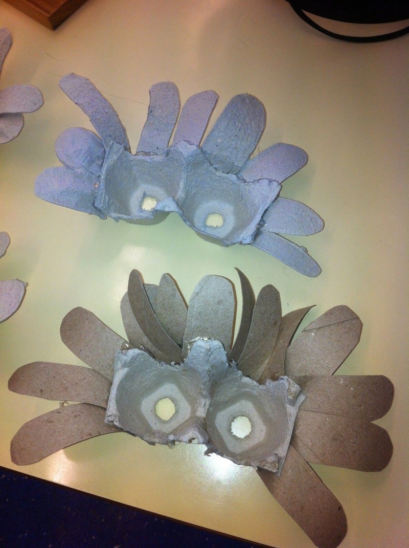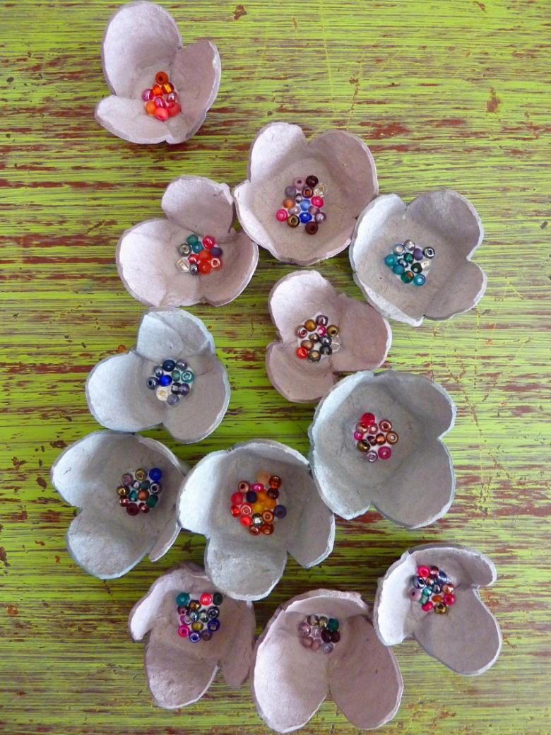 - Prenez un plateau à œufs et donnez-lui différentes formes : fleurs, formes géométriques, etc ;
