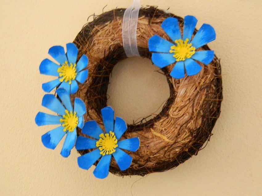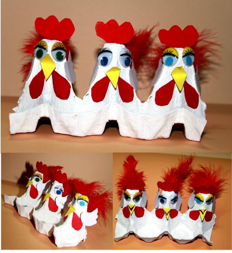 Une idée intéressante peut être concrétisée en découpant les ailes d'une poule dans des plateaux, en fabriquant le bec et le feston en carton et en ajoutant des plumes et du duvet. Le résultat est une merveilleuse décoration pour les fêtes.