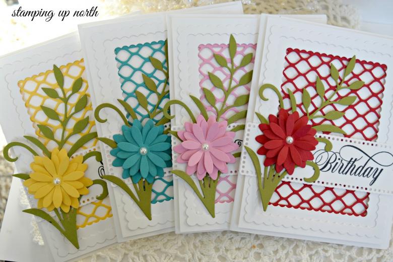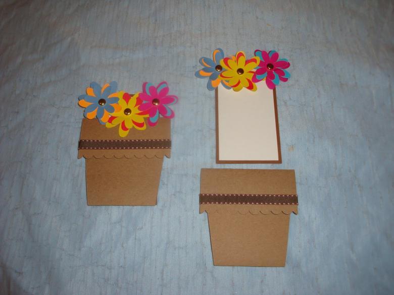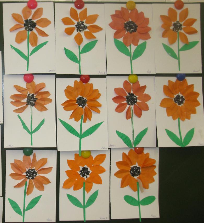 - À l'aide de découpes, découpez et collez les fleurs. Placez le plus petit sur le dessus. Tordez les pétales.