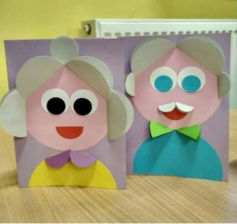 Il s'agit de l'idée la plus populaire de bricolage pour la journée des personnes âgées à l'école maternelle. Les poupées représentant les grands-parents peuvent être de toutes sortes : papier, textile, feutre, etc.