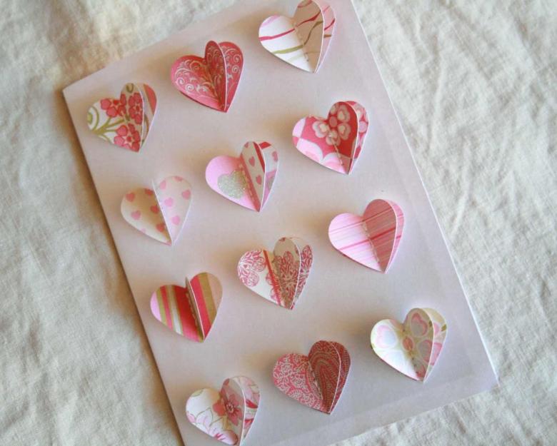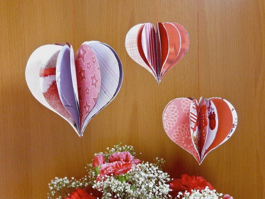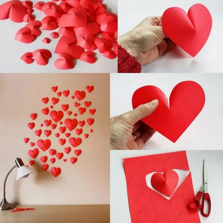 Les cœurs romantiques peuvent exprimer les sentiments de celui qui les offre sans longs mots et décorent joliment la pièce. En plus des cartes, les cœurs peuvent devenir :