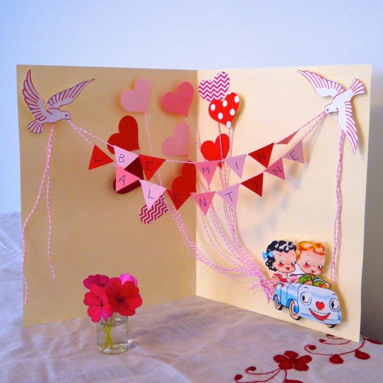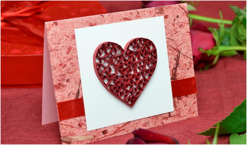 Une carte de Saint-Valentin plus élégante peut être décorée de fleurs artificielles, de rubans, de nœuds avec des perles et des bords façonnés. Pour commencer, vous pouvez utiliser des matériaux improvisés ou acheter un kit de scrapbooking.