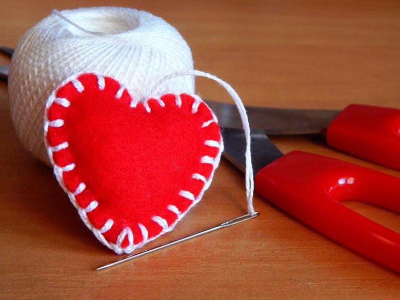 Il y a une dizaine d'années, les oreillers en forme de cœur rose décoraient les chambres de filles ou les chambres de personnes âgées. Cet élément de décor est aujourd'hui un peu oublié, vous pouvez donc sans risque réaliser une pelote à épingles similaire. Pour ce faire, vous devez coudre deux morceaux de tissu en forme de cœur, placés à l'intérieur de n'importe quel remplissage. Broderies, appliques, franges, nœuds et perles peuvent décorer un cœur tendre.