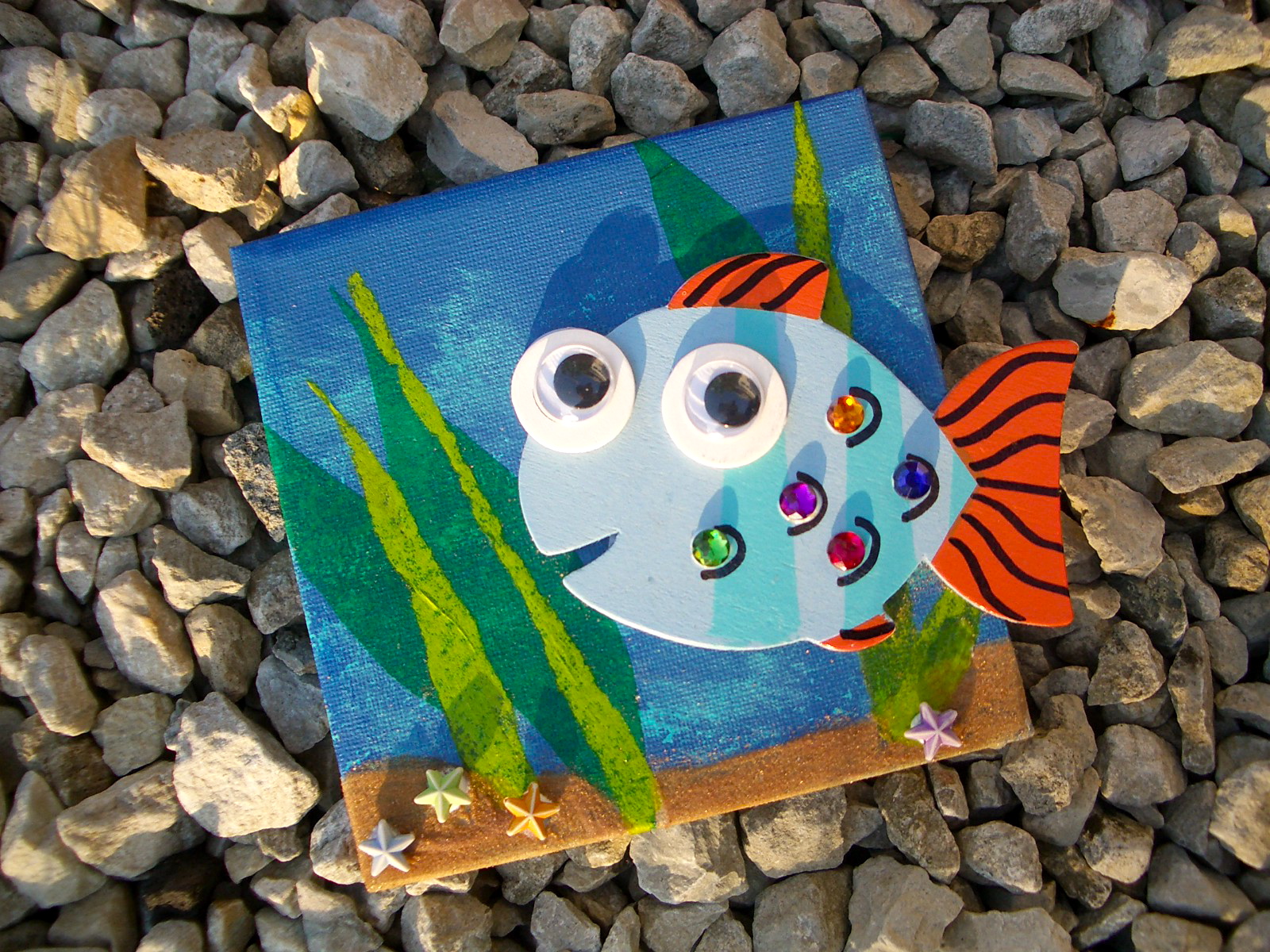 Terminez en décorant la plage avec un peu de colle à divers endroits et en saupoudrant le tout de sarrasin, qui constitue les coquillages.