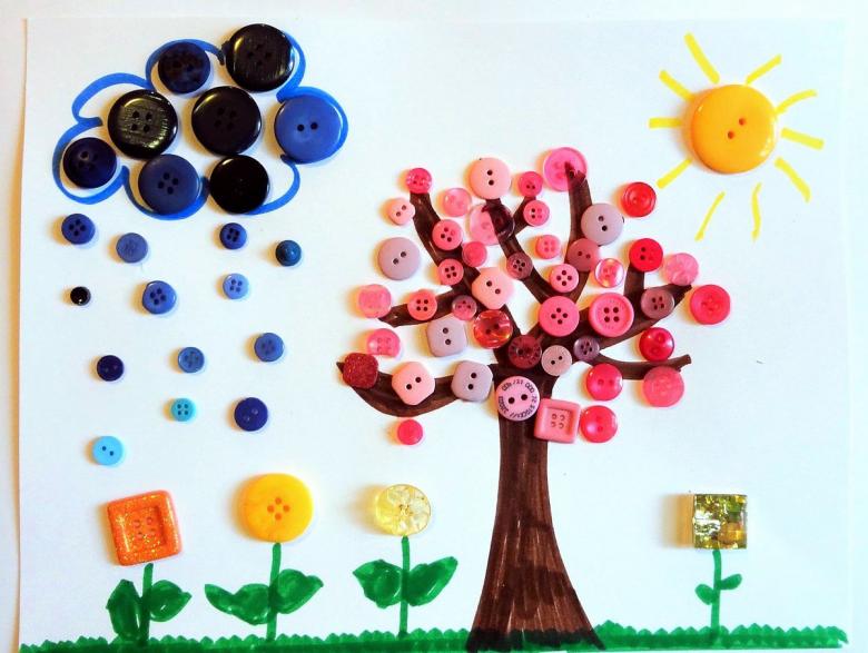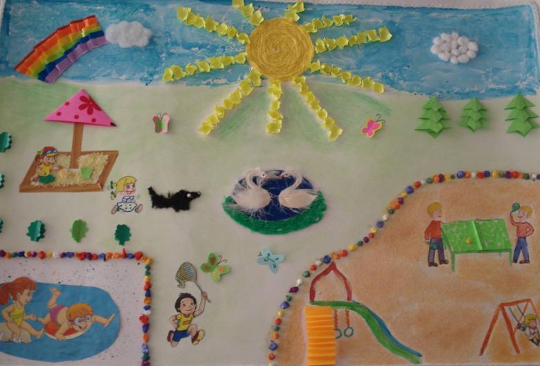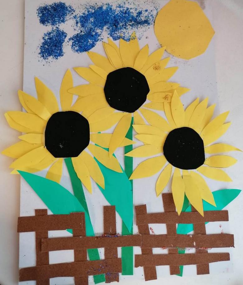 En outre, vous pouvez découper et coller des fleurs, le soleil et les nuages.