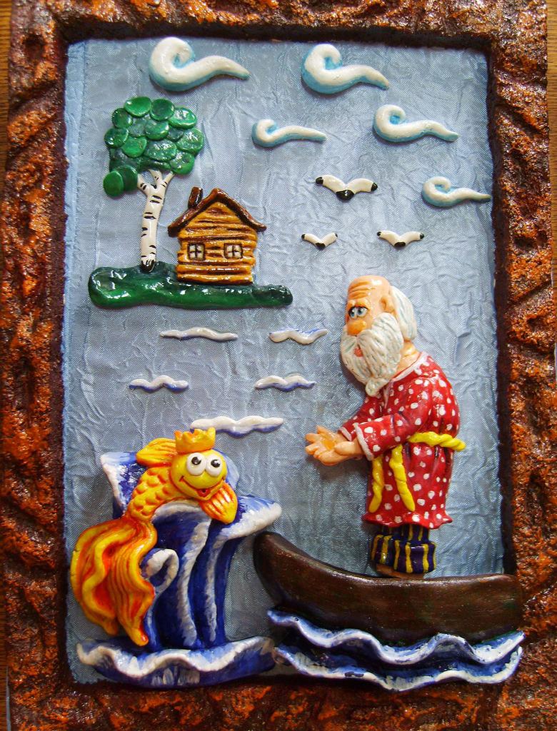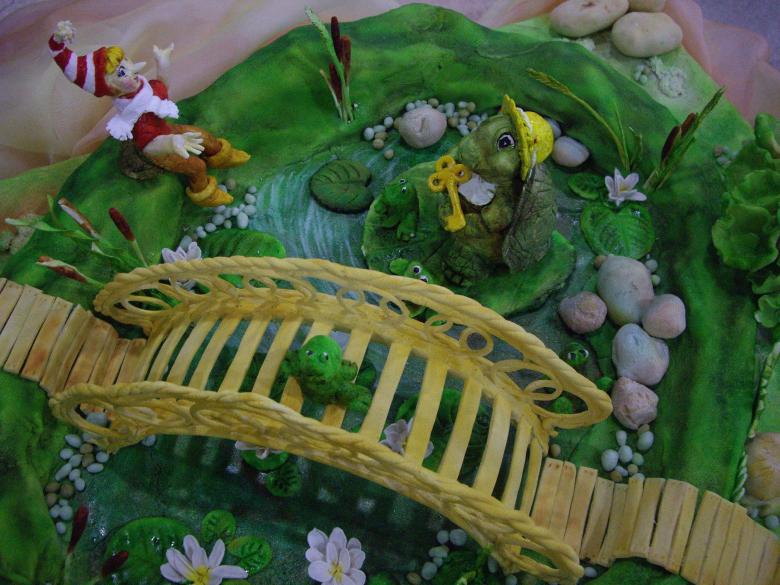 Et si ce n'est pas le cas, vous pouvez représenter Kolobok sans grand-mère et grand-père, la princesse Grenouille attrapée avec une flèche, une cabane sur des pattes de poulet, un château de fées et ne pas faire d'erreur, faire un produit complexe, soigné, mais pas excessif.