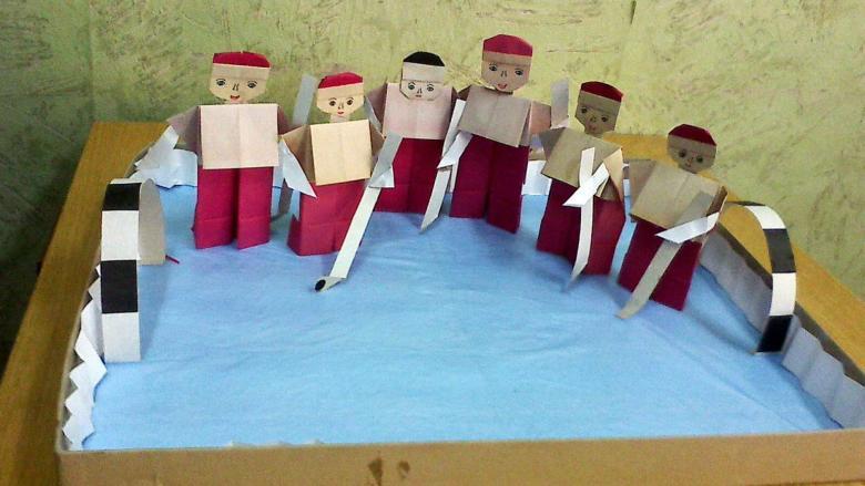 Lorsque vous faites un athlète de saut à la perche, n'oubliez pas les règles de sécurité. C'est pourquoi, lors de la réalisation de l'artisanat, il est utile de poser un tapis en forme d'éponge au fond.