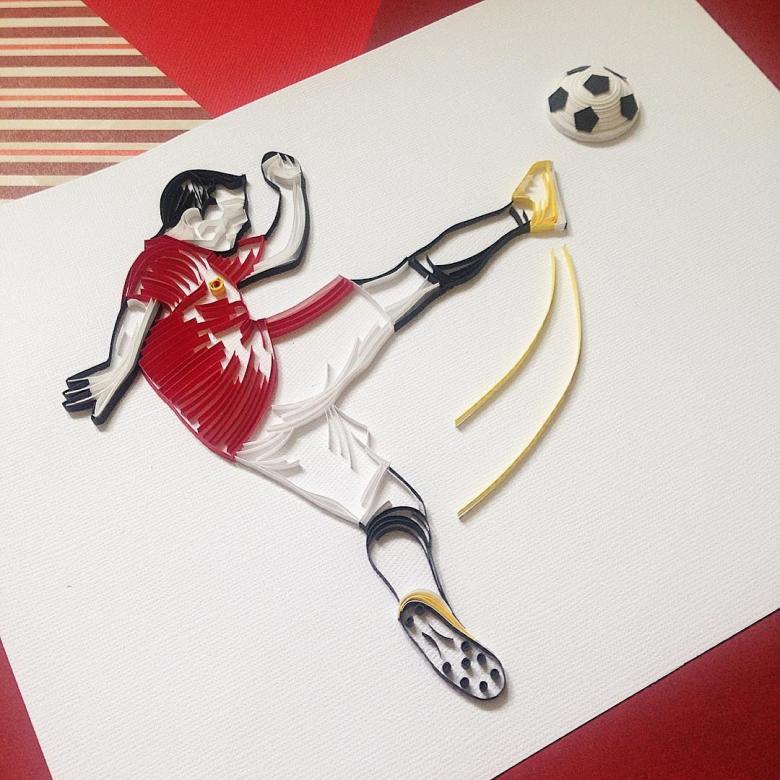 Vous pouvez simplement découper une variété d'équipements sportifs. Les kettlebells, les ballons et les haltères sont idéaux pour cela. Ensuite, l'enfant doit placer de manière autonome ces coquillages sur du papier. Vous pouvez également dessiner un terrain de football sur une feuille de papier brouillon et imprimer de petites figurines d'athlètes. Et faites-vous plaisir en distribuant les membres de l'équipe de football sur le terrain.