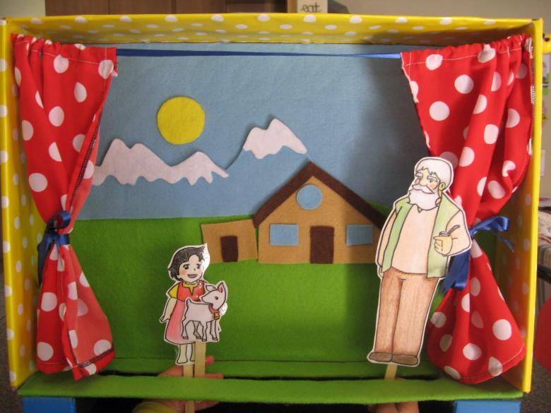 Des objets artisanaux sur le thème du théâtre peuvent être réalisés à partir de carton. Le moyen le plus rapide de fabriquer un théâtre de marionnettes à partir d'une boîte à chaussures ordinaire. Il vous faut un tissu de couleur vive pour le rideau. Et au dos, on peut coller une belle photo, qui sera l'arrière-plan.