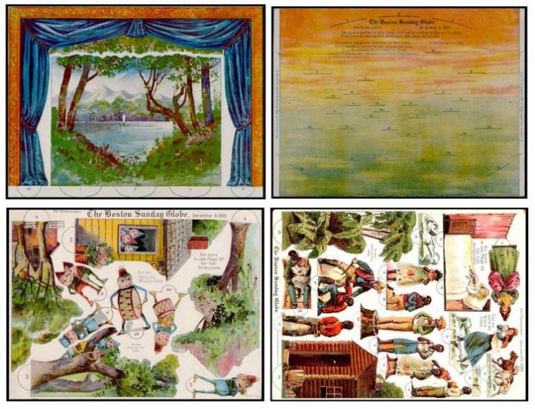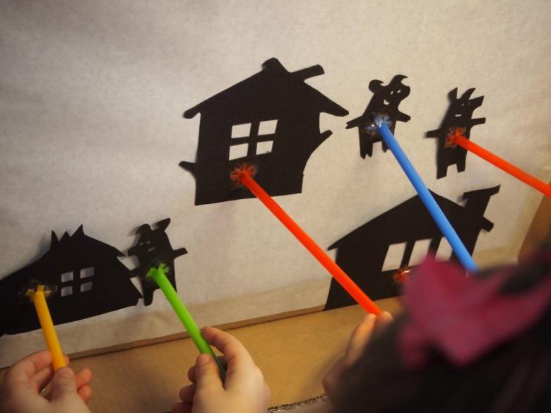 En plus des personnages, des décors de théâtre peuvent également être réalisés. Les personnages sont dessinés sur du carton. Puis ils sont découpés. Ensuite, ils sont fixés à la paille à l'aide d'une agrafeuse.