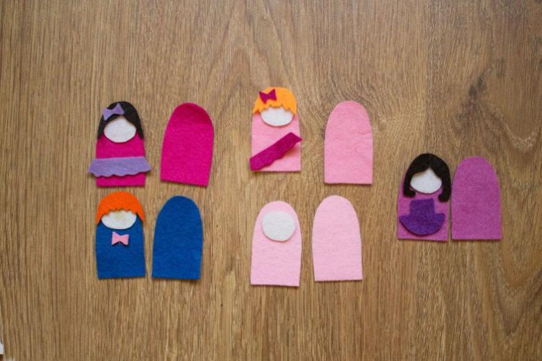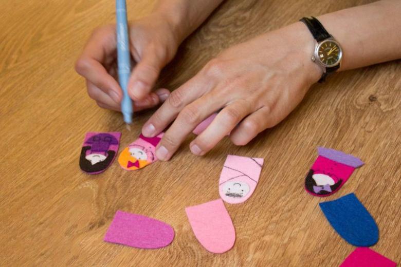 - Les marionnettes sont assemblées. La partie principale de la marionnette est faite de feutre. Ensuite, les autres parties sont cousues ensemble avec un point de couture. Les parties qui ne peuvent pas être cousues sont collées avec de la colle.