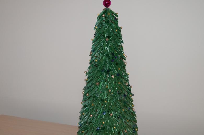Prenez note ! Le diamètre du cône ne doit pas dépasser le quart de sa hauteur, ceci est essentiel pour la stabilité de la structure. Il est bon de coller le cône à une feuille de carton pour rendre l'arbre encore plus solide.