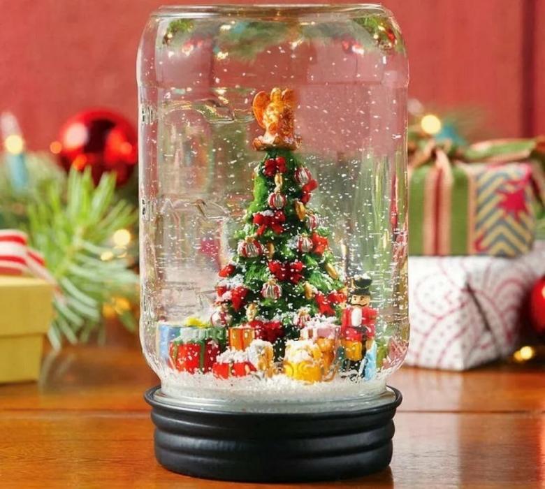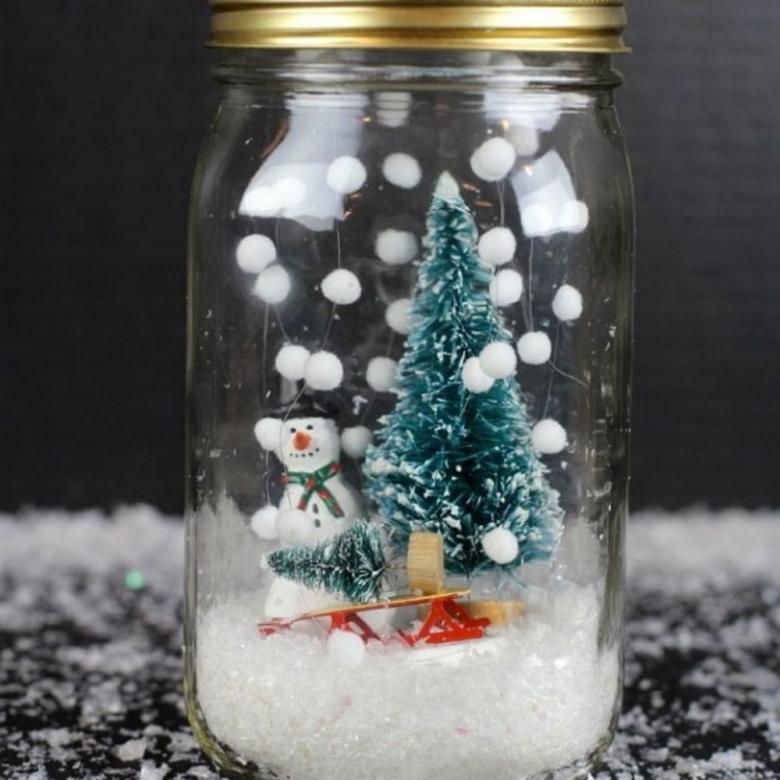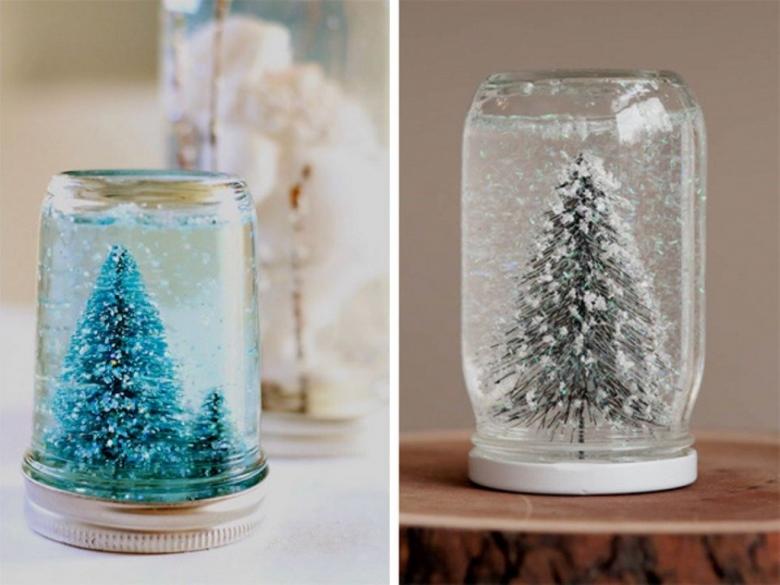 - Les figurines et les guirlandes - la neige artificielle - sont ensuite fixées au couvercle du pot.
