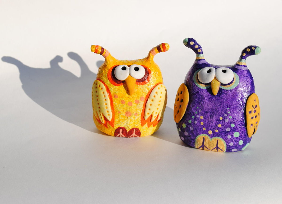 Après la prise de la pâte, vous pouvez décorer avec de la peinture acrylique ou de la gouache. De belles applications de cercles de papier, de petits boutons et de coquillages peuvent également être utilisées.
