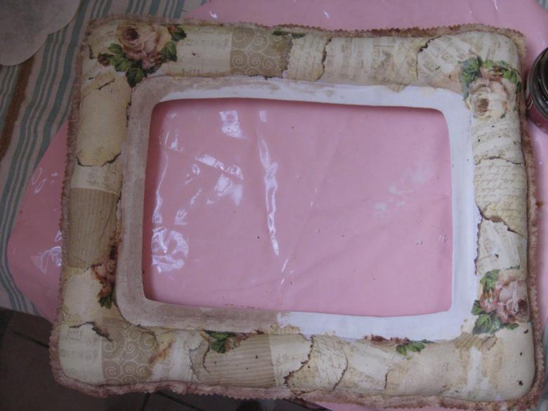 - À l'aide d'un couteau bien aiguisé, découpez le milieu du cadre en laissant des bords de 3 à 3,5 cm de large.