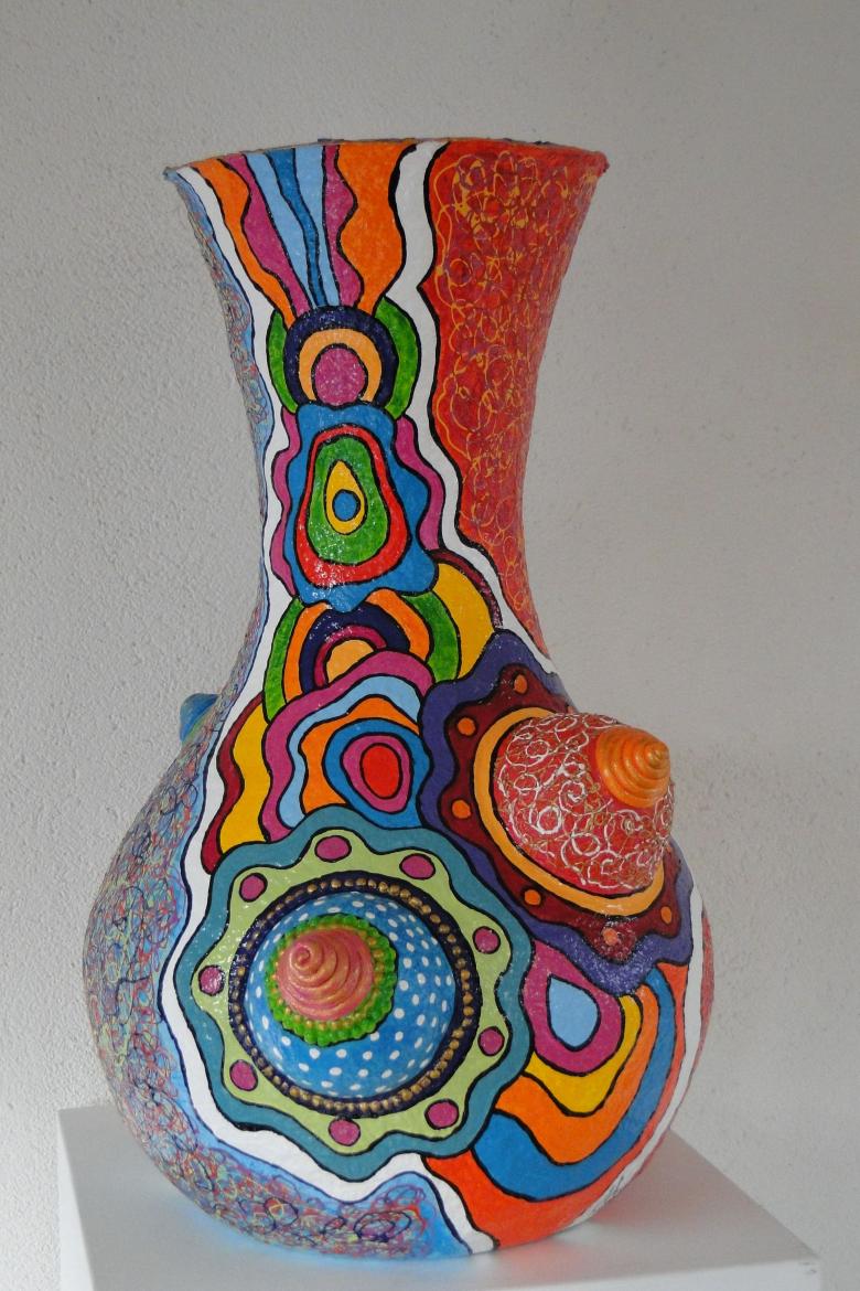 Les moitiés sont collées ensemble et le vase est peint à la gouache ou à la peinture acrylique. Les aquarelles ne sont pas souhaitables, car la base aqueuse endommagera rapidement l'artisanat.